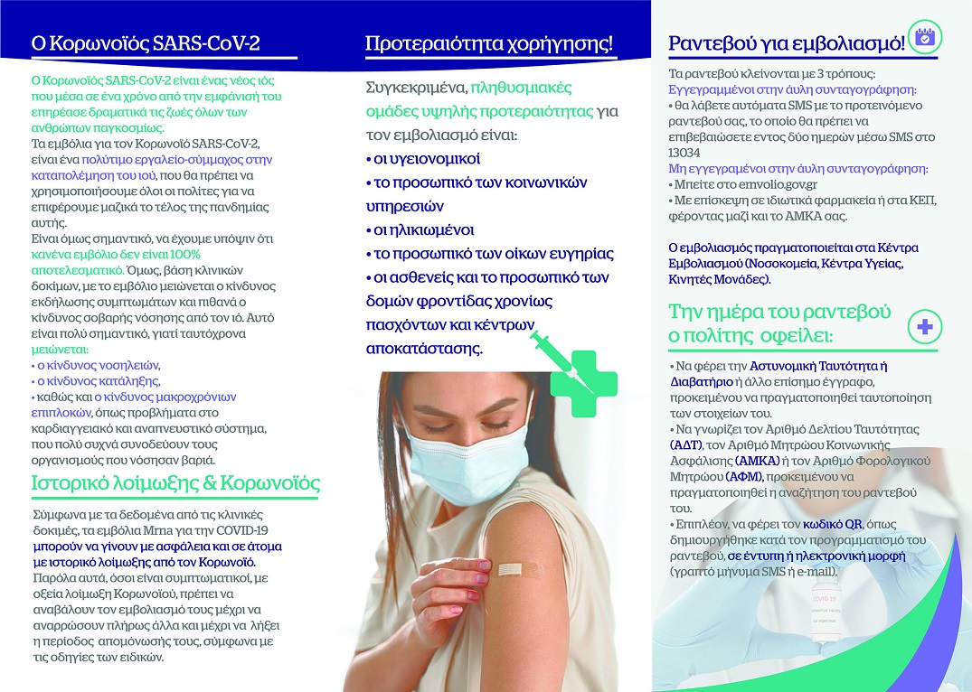 Οι πολίτες μπορούν να συμμετέχουν στον εμβολιασμό μέσω της άυλης συνταγογράφησης ή για όσους δεν είναι εγγεγραμμένοι στην άυλη συνταγογράφηση μέσω on-line πλατφόρμας (https://emvolio.gov.gr/)