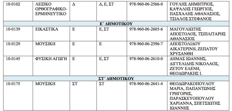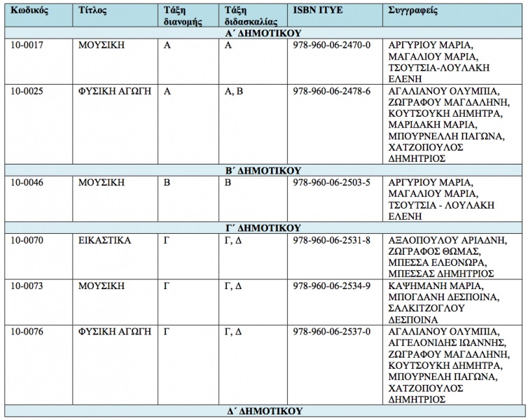 Πιο συγκεκριμένα, σύμφωνα με την απόφαση τα διδακτικά βιβλία του ακόλουθου πίνακα είναι δυνατό είτε να ανακυκλώνονται είτε να επαναχρησιμοποιούνται ανάλογα με την κατάσταση στην οποία παραδίδονται.