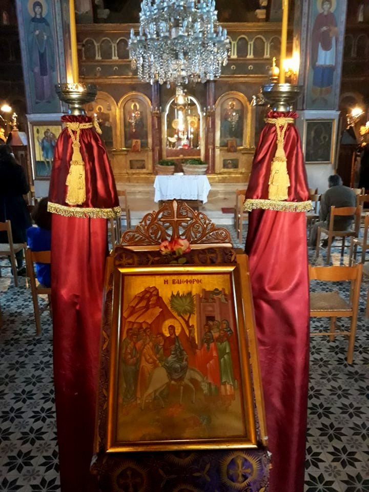 Σε δύσκολους καιρούς, δυστυχώς λόγω των μέτρων για την πανδημία, στην ιερή Ακολουθία τηρήθηκαν όλα τα μέτρα προστασίας, ενώ παραβρέθηκαν οι πιστοί κάτοικοι του χωριού μας, εντός και εκτός του ναού, όπου είχε τοποθετηθεί κάνιστρο με βάγια, για όσους συγχωριανούς μας ήθελαν να πάρουν στα σπίτια τους…
