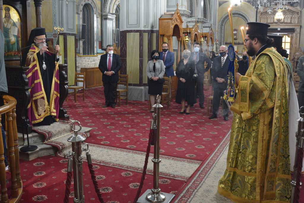 Μετά τη Θεία Λειτουργία τελέσθηκε η επίσημη Δοξολογία, με την παρουσία της Εξοχωτάτης Προέδρου της Ελληνικής Δημοκρατίας κ. Αικατερίνης Σακελλαροπούλου. Πριν την απόλυση, ο Σεβασμιώτατος Μητροπολίτης κ. Κοσμάς ανέγνωσε το Μήνυμα του Μακαριωτάτου Αρχιεπισκόπου Αθηνών και πάσης Ελλάδος κ. κ. Ιερωνύμου, εκ μέρους της Ιεράς Συνόδου. Τον πανηγυρικό της ημέρας εκφώνησε ο εκπρόσωπος της Ελληνικής Κυβερνήσεως, Αναπληρωτής Υπουργός Ανάπτυξης και Επενδύσεων κ. Νικόλαος Παπαθανάσης.