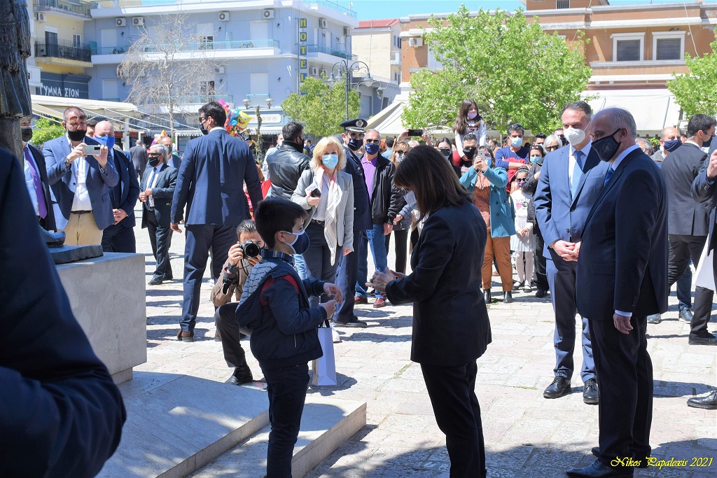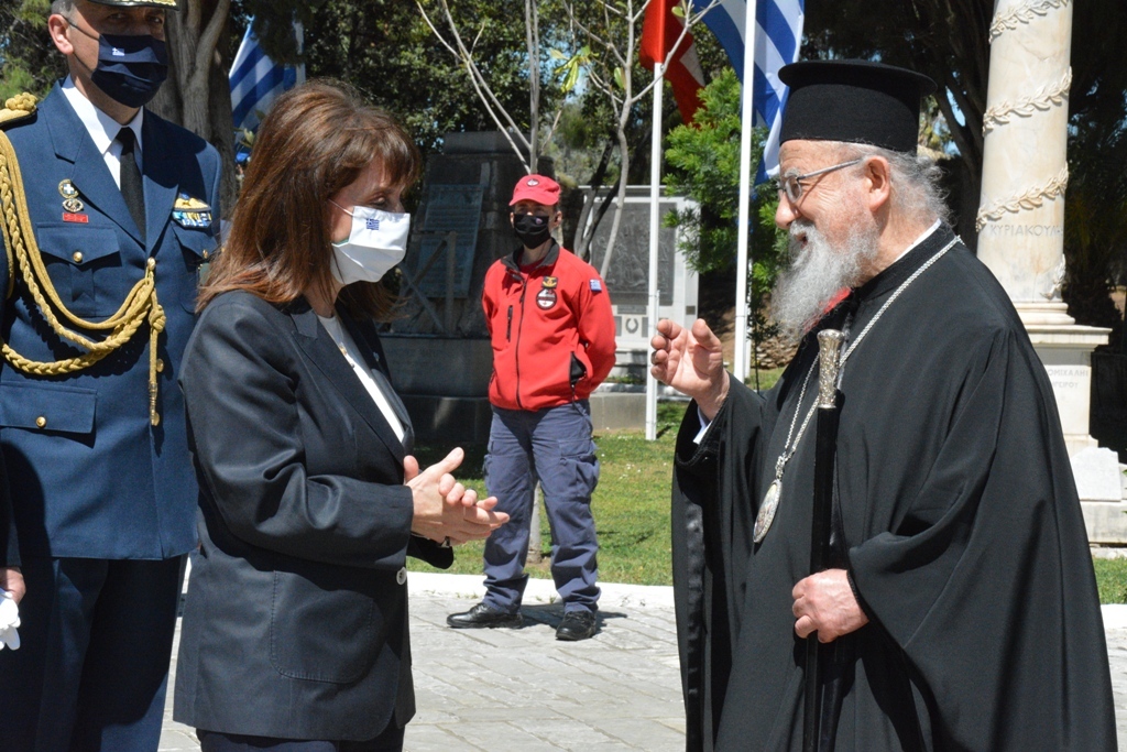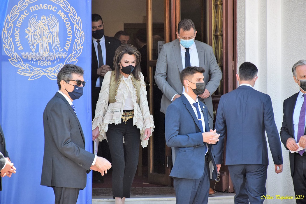 Ακολούθησε η κατάθεση στεφάνου από την Εξοχωτάτη Πρόεδρο της Ελληνικής Δημοκρατίας και το μοιρολόι «Να ζει το Μεσολογγι».