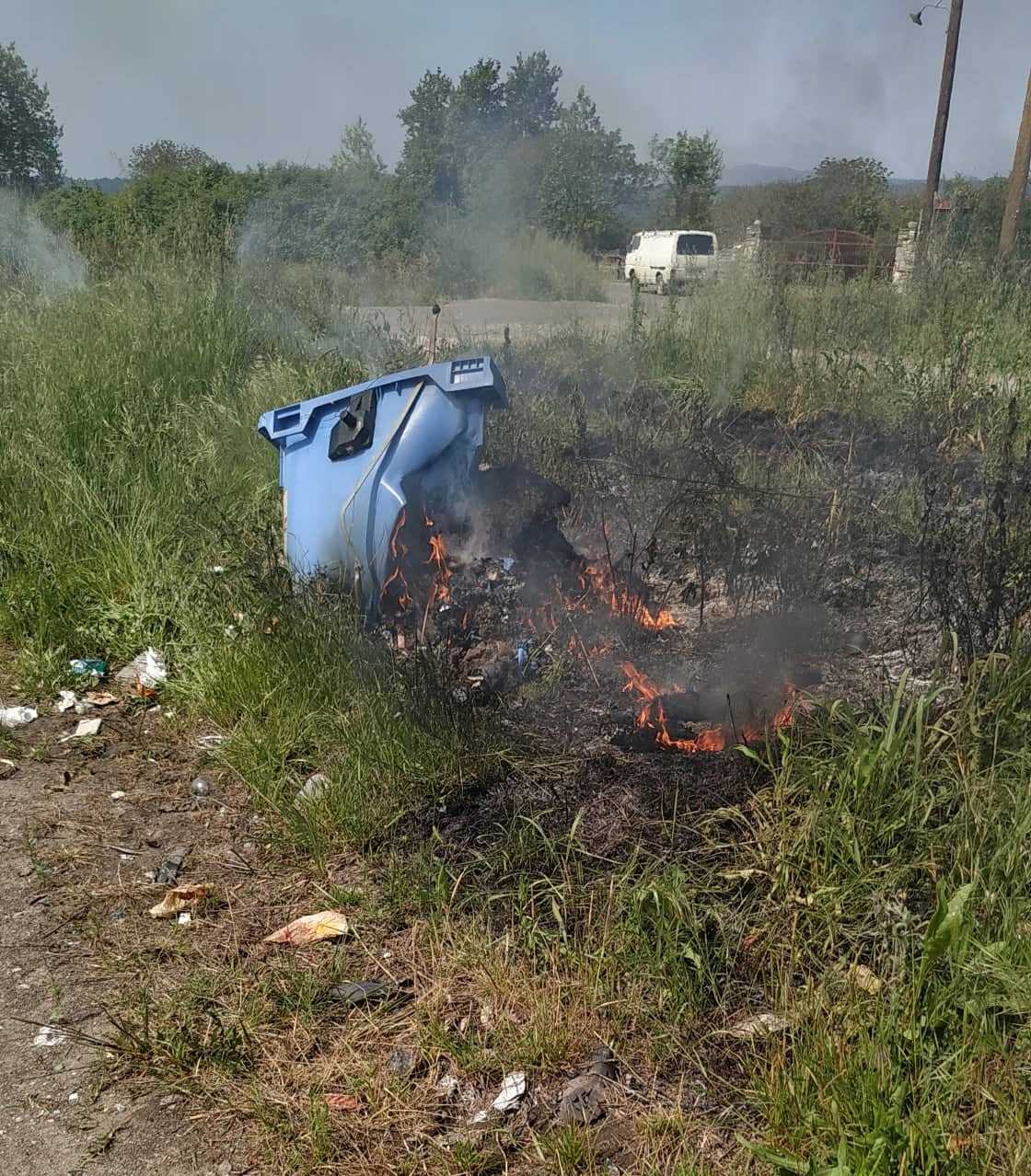 Ένας μπλε κάδος απορριμμάτων κάηκε ολοσχερώς σήμερα το πρωί στην περιοχή του οικισμού Αγίου Γεωργίου Καλυβίων, μάλλον από εστία φωτιάς που προκλήθηκε αρχικά στην υπάρχουσα βλάστηση.