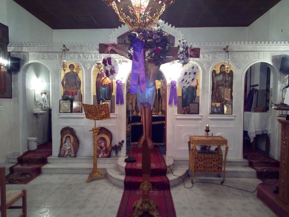 Η Ακολουθία των Αγίων Παθών και η αναπαράσταση της Σταύρωσης του Ιησού Χριστού, τελέστηκαν απόψε παρουσία πιστών στον Ιερό Ναό Αγίου Δημητρίου, στον οικισμό Πλατάνου Καλυβίων.