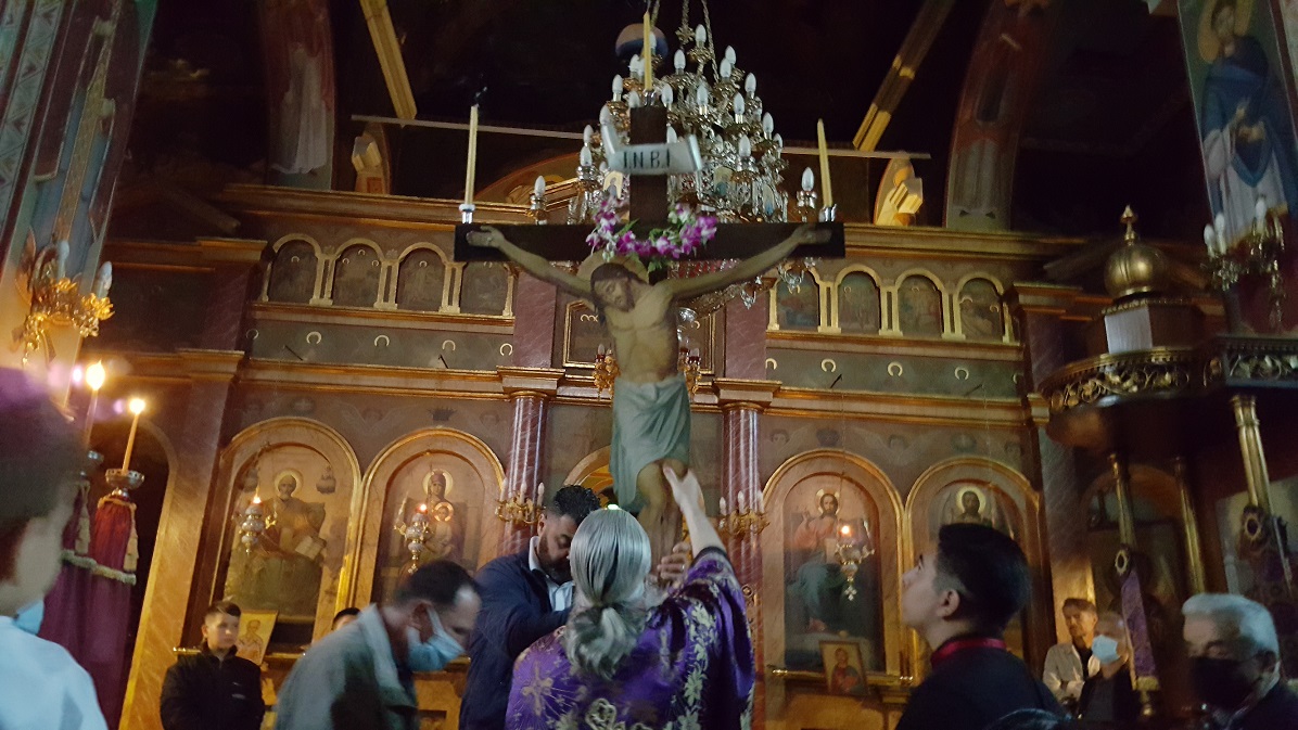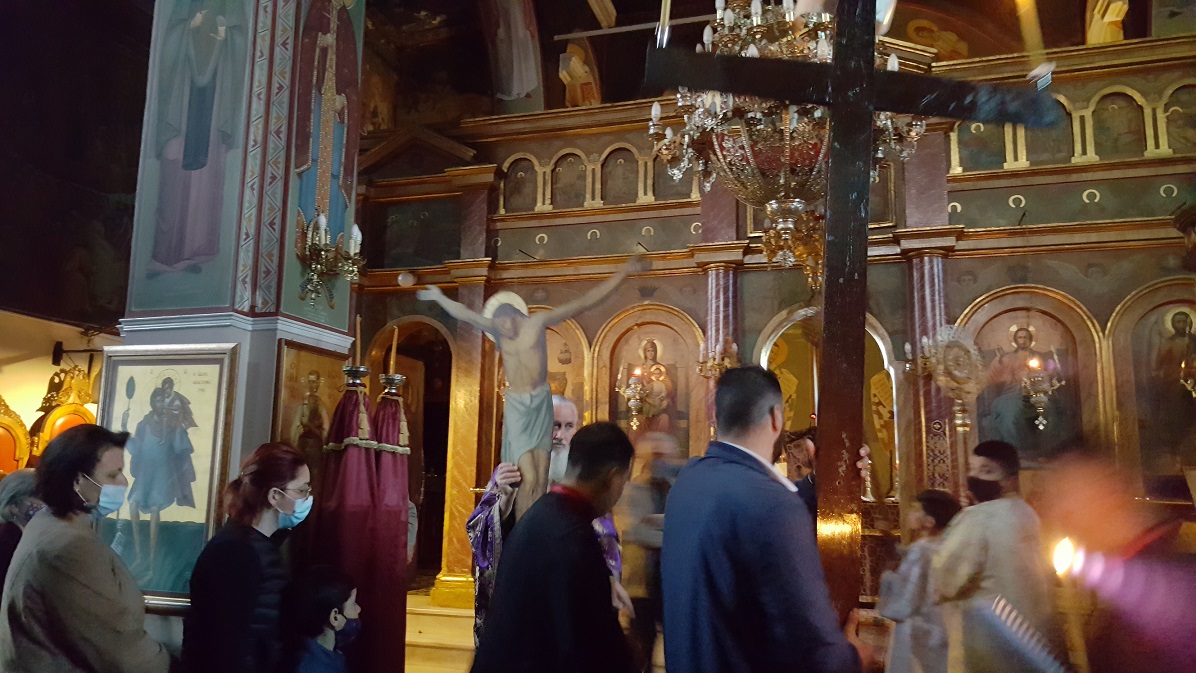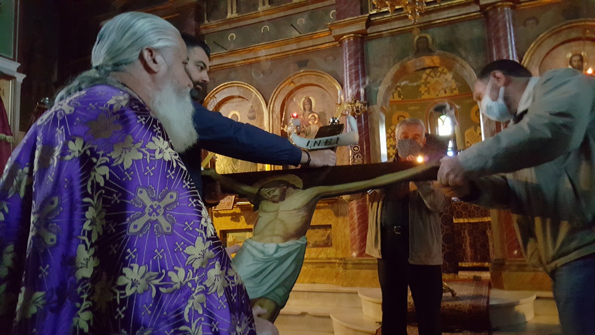 Η Ακολουθία των Αγίων και Αχράντων Παθών και η αναπαράσταση της Σταύρωσης του Κυρίου ημών Ιησού Χριστού, τελέστηκαν απόψε στον Ιερό Ναό Αγίου Νικολάου Καλυβίων, παρουσία πιστών εντός και εκτός του ναού να ακούν το συγκλονιστικό «Σήμερον κρεμάται επί ξύλου ο εν ύδασι την γην κρεμάσας»!