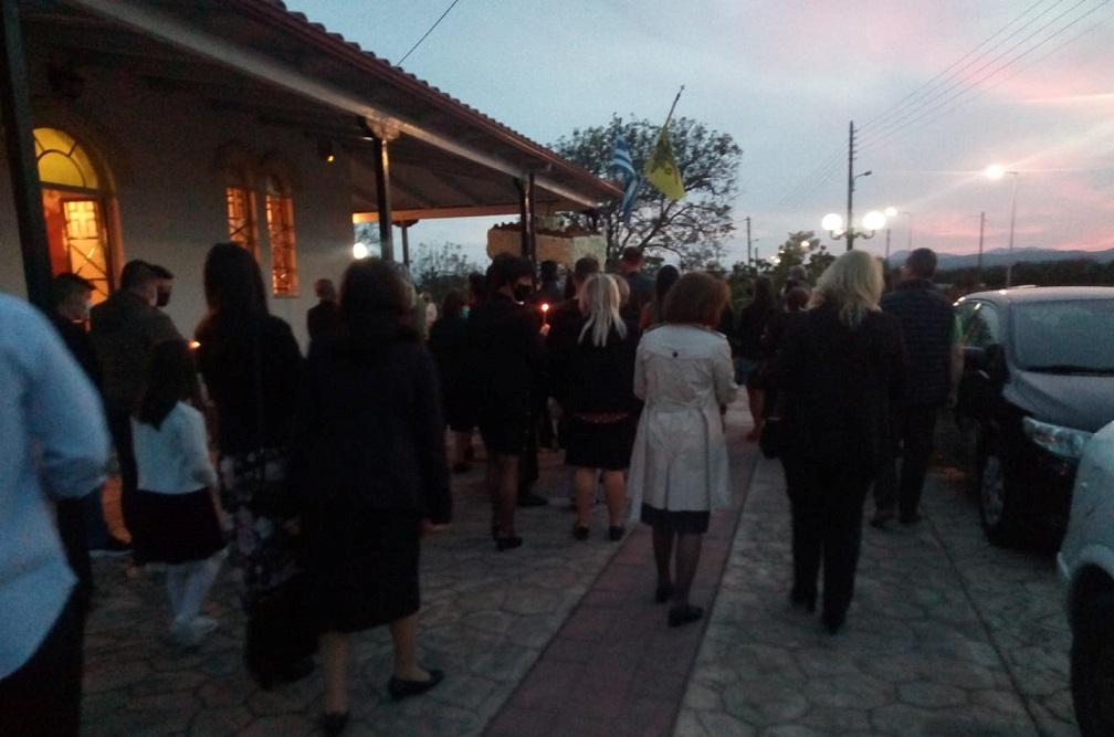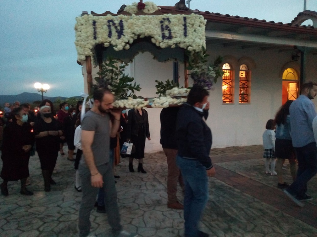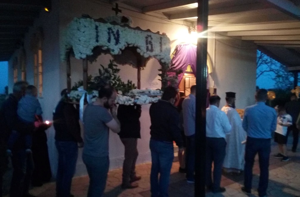 Πραγματοποιήθηκε σήμερα το βράδυ η Ακολουθία και η Περιφορά του Επιταφίου, στο εξωκλήσι του Αγίου Δημητρίου του οικισμού Πλατάνου Καλυβίων, παρουσία αρκετών κατοίκων.