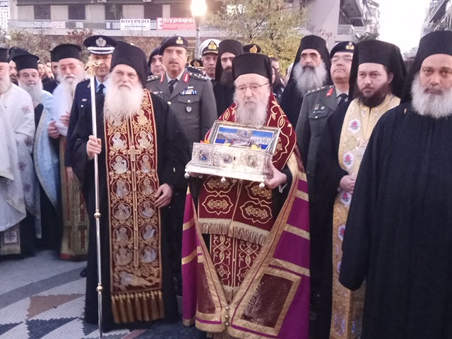 Το θεομητορικό κειμήλιο, που από τις 19/11 ετίθετο προς προσκύνηση στο Μεσολόγγι, προσκόμισε ο Καθηγούμενος Γέροντας Εφραίμ και το υποδέχθηκε το απόγευμα στο Αγρίνιο, στην κεντρική πλατεία Δημοκρατίας, ο Μητροπολίτης Αιτωλίας & Ακαρνανίας κ.κ. Κοσμάς, επικεφαλής του κλήρου, των πιστών και των Αρχών της περιοχής.
