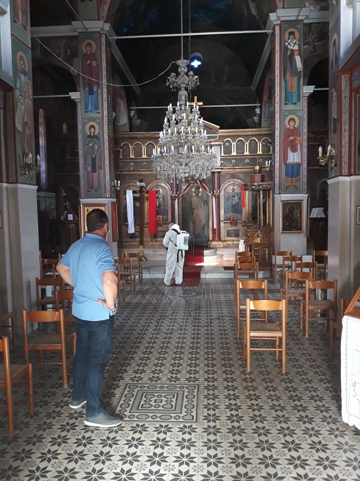 Με πρωτοβουλία του Προέδρου Δημήτρη Αναστασίου και σε συνεννόηση με την Εκκλησιαστική Επιτροπή, ακολουθώντας πιστά βεβαίως τις οδηγίες του ΕΟΔΥ, κρίθηκε αναγκαίο να γίνουν σήμερα οι συγκεκριμένες εργασίες. Επίσης ανεξαρτήτως του αν έχει πραγματοποιηθεί ή όχι απολύμανση σε προγενέστερο χρόνο, όταν γίνονται σε κάποια υπηρεσία rapid test πραγματοποιείται εκ νέου απολύμανση, όπως έγινε σήμερα στο κτίριο της Κοινότητας.