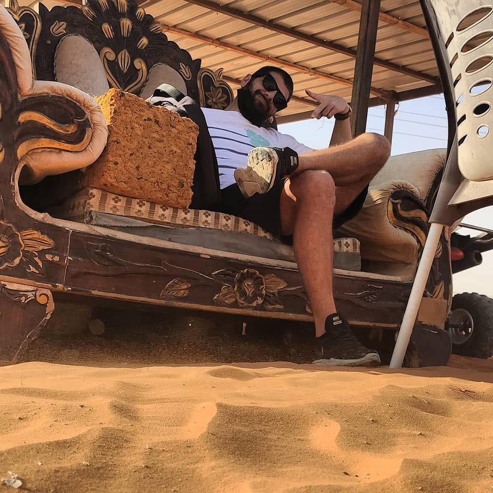 Ο συγχωριανός μας Ανδρέας Ν. Φαναριώτης παρά την ολιγόμηνη παρουσία του στην Σαουδική Αραβία, το δίχως άλλο έχει επισκεφθεί και περιοχές που καταλαμβάνει η τεράστια έρημος και μας μεταφέρει την εμπειρία του: «Μπορείς να βγεις στην έρημο αν έχεις μεταφορικό μέσο, να ψήσεις εκεί, να πιείς ένα τσάι (αφού εδώ δεν επιτρέπεται το αλκοόλ), αλλά αν σε ¨πετύχει¨ αμμοθύελλα εκεί είναι πολύ δύσκολα γιατί μπαίνουν εύκολα στα μάτια σου οι κόκκοι της άμμου και νιώθεις σα να σε ¨κόβουν¨ στο δέρμα (μου έχει συμβεί…). Στην έρημο υπάρχουν οάσεις, μικρές ¨νησίδες¨ βλάστησης με πόσιμο νερό, όμως μέχρι στιγμής δεν έχω πάει σε κάποια… Όσο για τις γνωστές σε όλους καμήλες, ο Ανδρέας αναφέρει σχετικά: «Η αλήθεια είναι ότι δεν έχω ανέβει εδώ σε καμήλα, έχω ιππεύσει όμως σε ταξίδια που πραγματοποίησα στην Αίγυπτο και την Ιορδανία, όπου καθώς αυτό το μεγάλο ζώο ανεβαίνει τους αμμόλοφους και διασχίζει την έρημο, πραγματικά είναι πολύ καλή και ξεχωριστή εμπειρία…».
