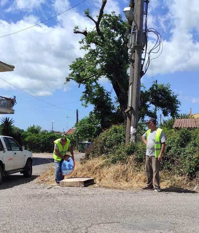Να σημειώσουμε ότι, μετά και την τοποθέτηση ενός ακόμη παραβολικού καθρέφτη σε άλλη μια επικίνδυνη διασταύρωση στον οικισμό Αγίου Γεωργίου Καλυβίων, ουσιαστικά ολοκληρώθηκε η πρώτη φάση των οδοσημάνσεων στο χωριό μας.