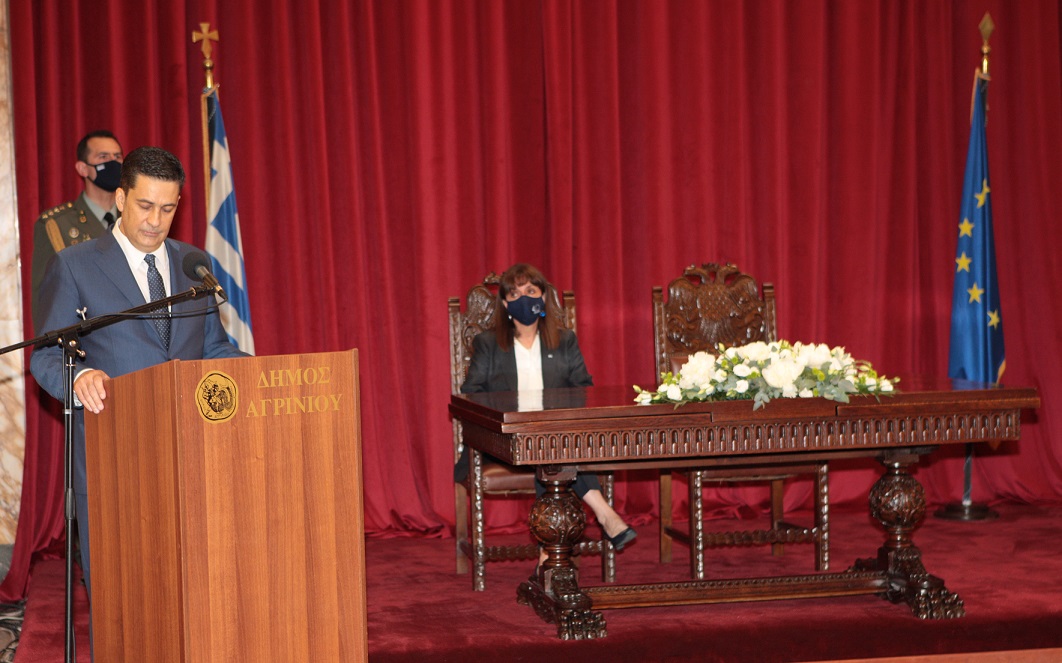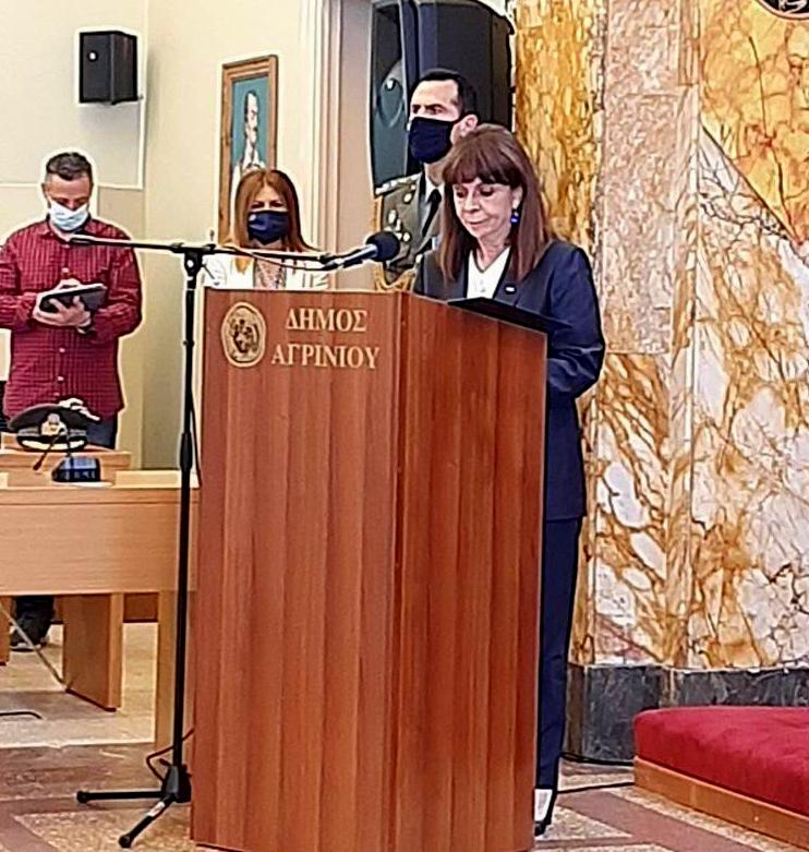 Εξοχότατη Πρόεδρε της Δημοκρατίας, η παρουσία σας στον εορτασμό της επετείου της απελευθέρωσης του Αγρινίου αποτελεί ξεχωριστή τιμή για την πόλη.