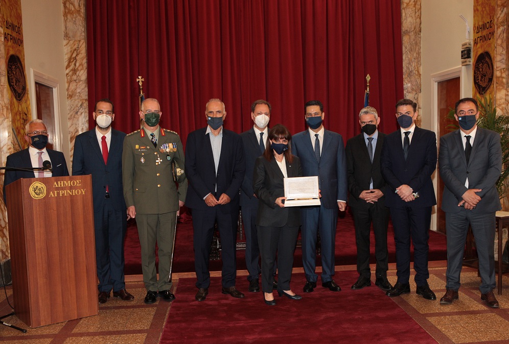 Επίτιμη δημότης Αγρινίου ανακηρύχθηκε σήμερα η Πρόεδρος της Δημοκρατίας, κα Κατερίνα Σακελλαροπούλου, σε ειδική τελετή στην Αίθουσα συνεδριάσεων του Δημοτικού Συμβουλίου Αγρινίου.