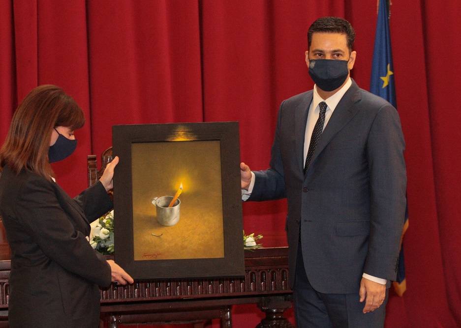 Ο Δήμαρχος Αγρινίου προσέφερε στη Πρόεδρο της Δημοκρατίας πίνακα του ζωγράφου Χρήστου Γαρουφαλή με τίτλο «Βραχωρίτικη μνήμη».