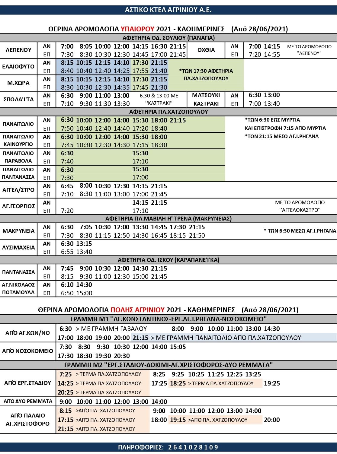 Ανακοινώθηκαν από το Αστικό ΚΤΕΛ Αγρινίου τα θερινά δρομολόγια που θα τεθούν σε ισχύ για το κοινό από τη επόμενη Δευτέρα 28/6, ενώ ειδικά για την διαδρομή Πλάτανος - Καλύβια - Αγ. Γεώργιος – Αγγελόκαστρο, τις καθημερινές τα δρομολόγια θα εκτελούνται ως εξής: