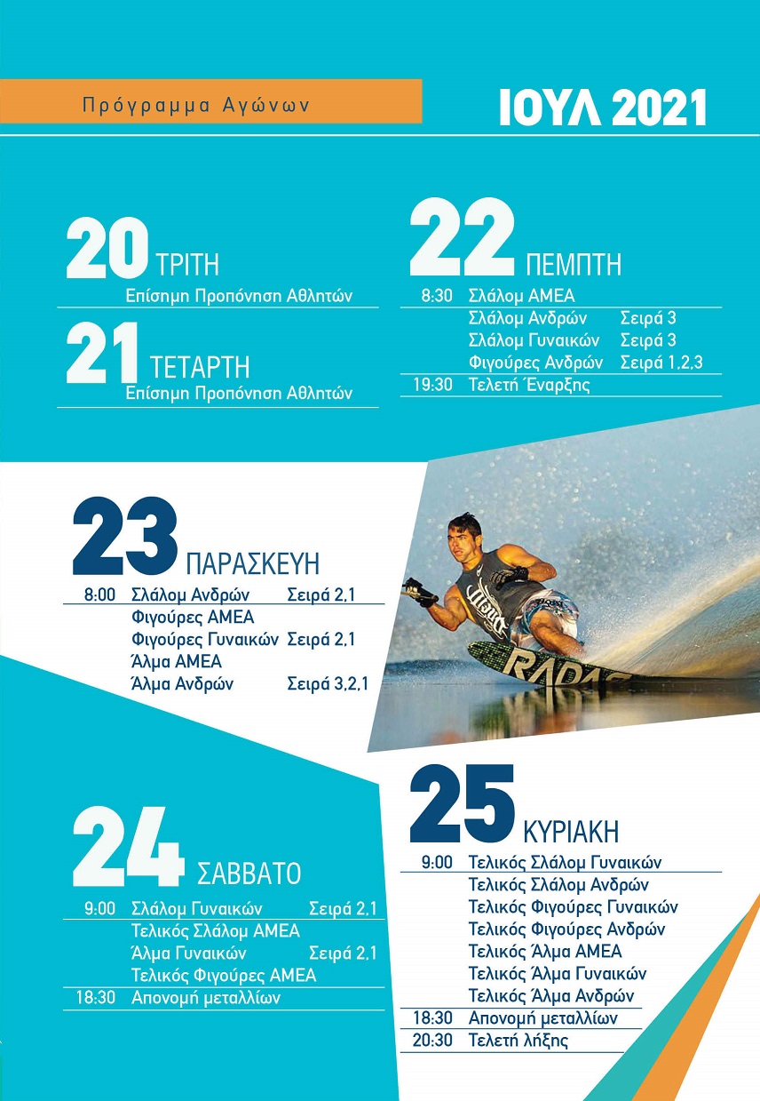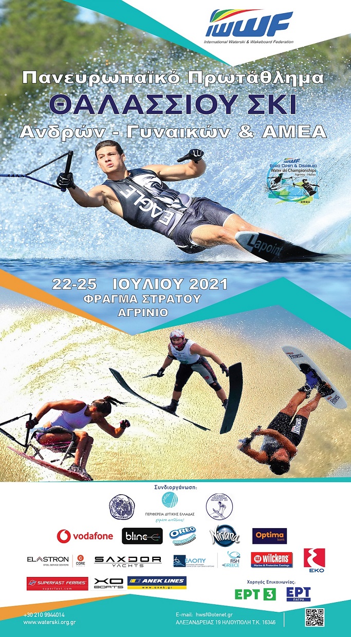 Ο Δήμος Αγρινίου, η Περιφέρεια Δυτικής Ελλάδας και η Ελληνική Ομοσπονδία Θαλασσίου Σκι συνδιοργανώνουν το Πανευρωπαϊκό Πρωτάθλημα Ανδρών Γυναικών και Αμεα στις 22 - 25 Ιουλίου στο Φράγμα Στράτου στο Αγρίνιο.