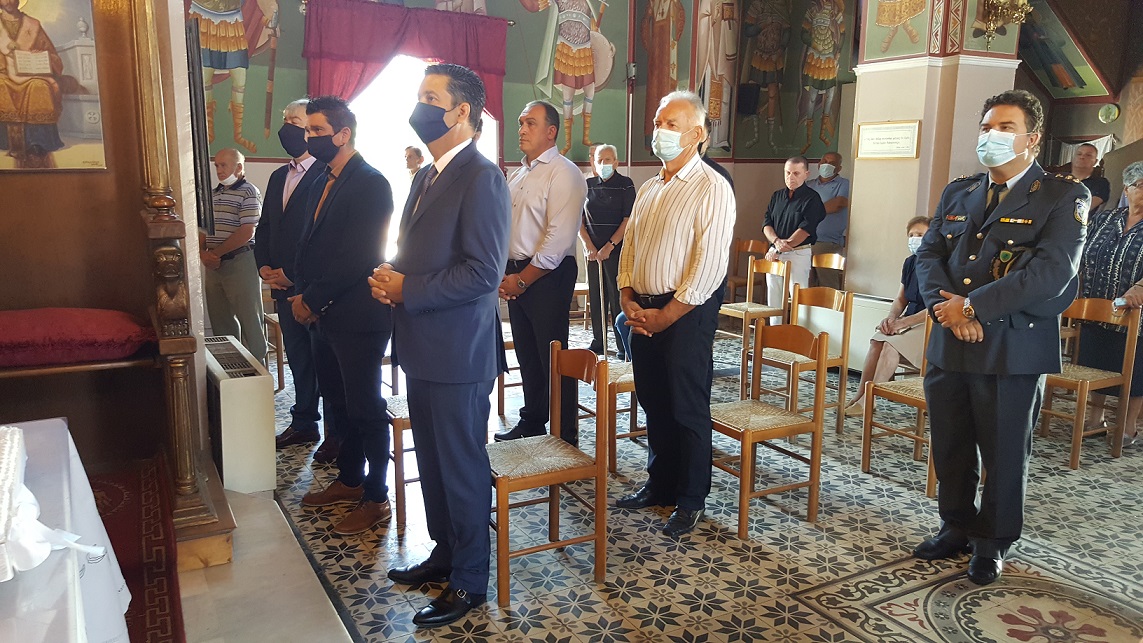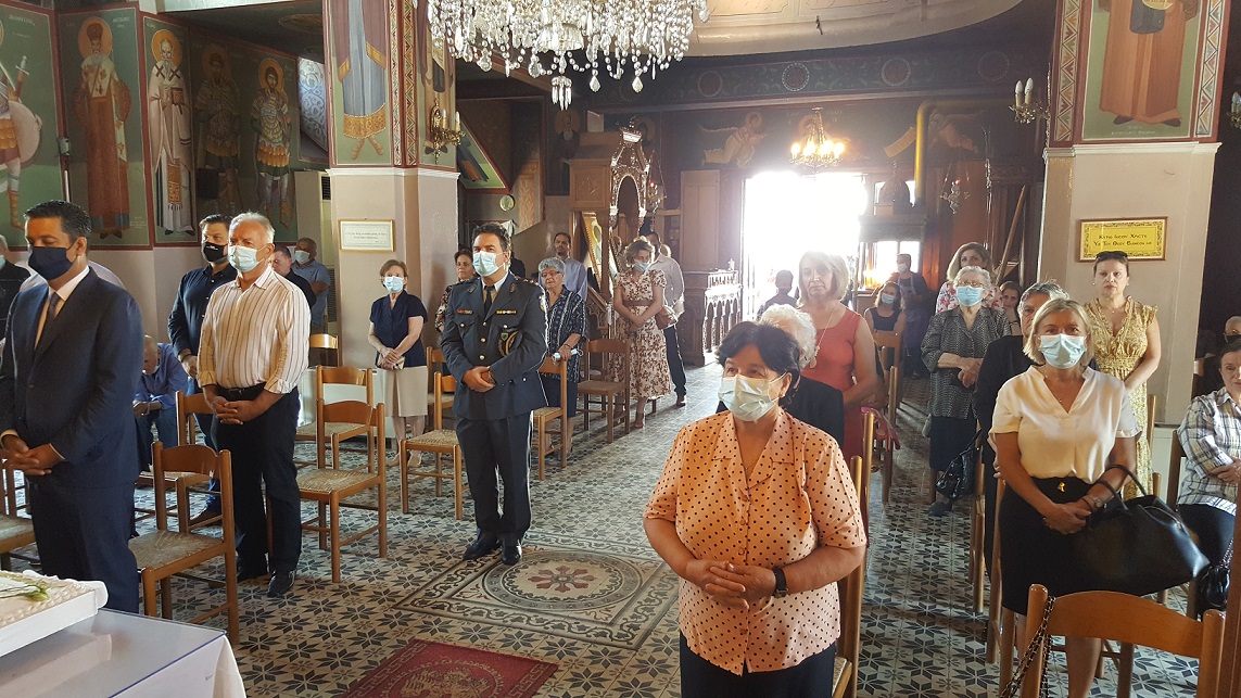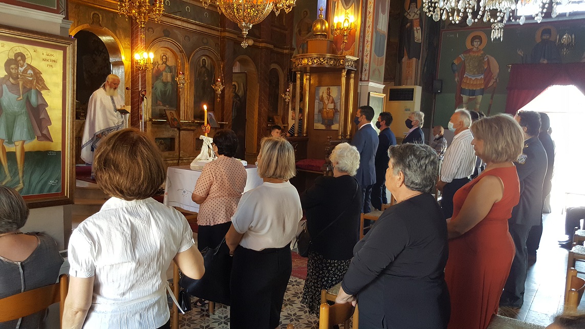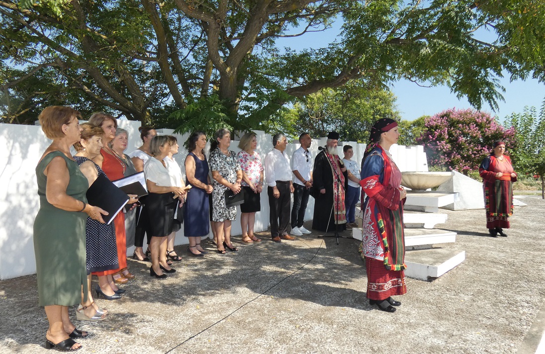 Δίπλα στο βωμό, κυρίες με παραδοσιακές φορεσιές από το Χορευτικό τμήμα Καλυβίων, τίμησαν την σημερινή επέτειο.