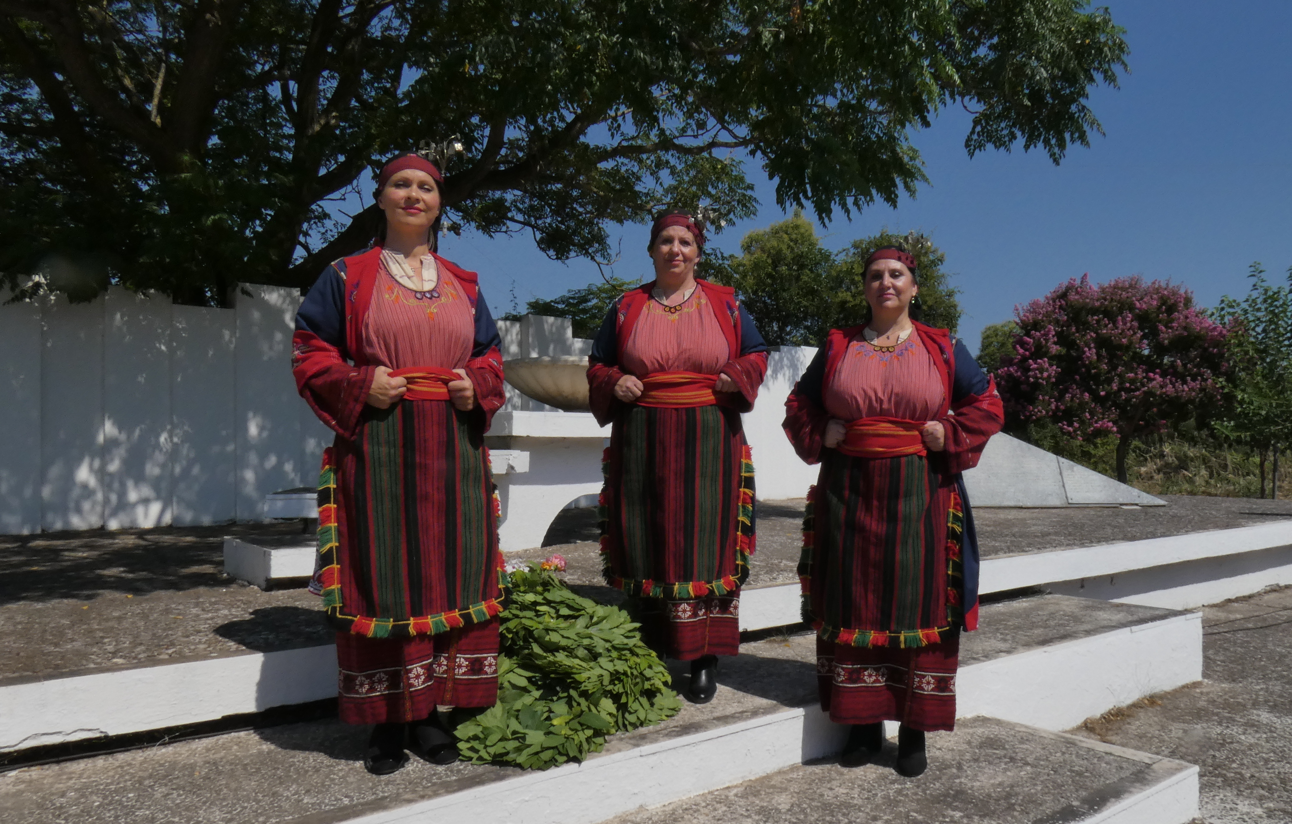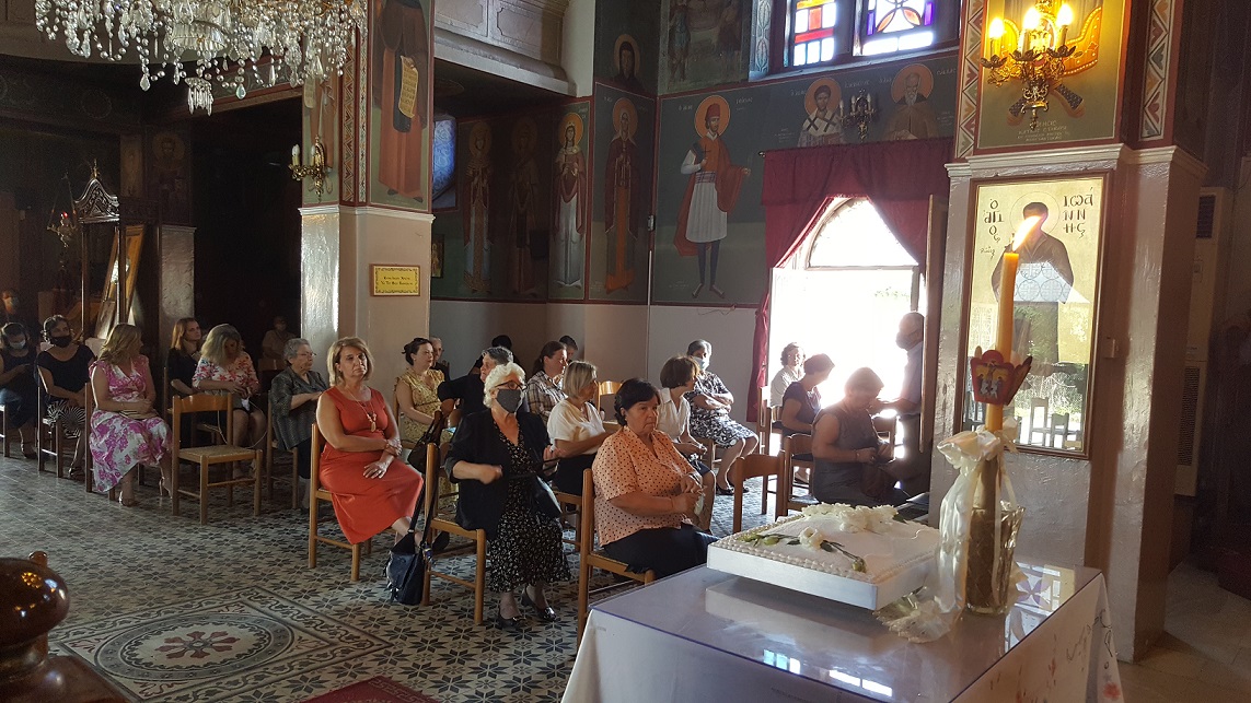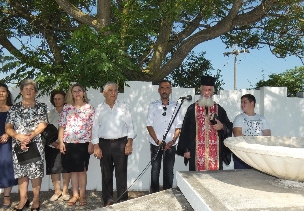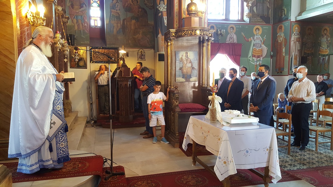 Δίπλα στο βωμό, κυρίες με παραδοσιακές φορεσιές από το Χορευτικό τμήμα Καλυβίων, τίμησαν την σημερινή επέτειο.