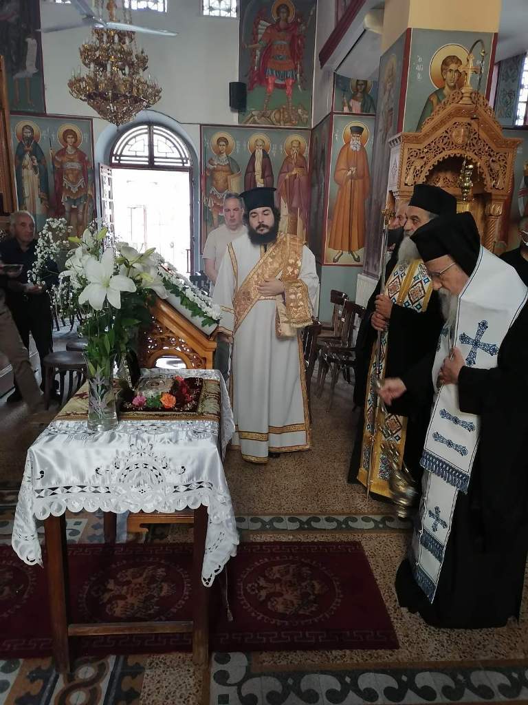 Στον ενοριακό Ιερό Ναό Αγίου Παντελεήμονος, το πρωί της Κυριακής, ο Σεβασμιώτατος υποδέχθηκε απότμημα εκ του ιερού λειψάνου του αγίου, το οποίο εκόμισε ο Αρχιερατικός Επίτροπος Παμφίας αρχιμ. Θεόκλητος Ράπτης και προσέφερε ο Σεβασμιώτατος Μητροπολίτης Εδέσσης κ. Ιωήλ. Το ιερό λείψανο θα παραμείνει μόνιμα στο χωριό του νέου αγίου της Εκκλησίας,.