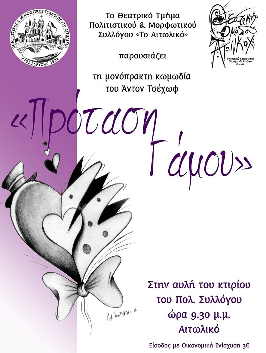 Την Πέμπτη 19/8 η παράσταση "Πρόταση Γάμου" στο Αιτωλικό