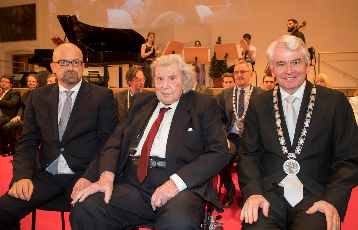 Σε περιοδεία του στην Αμερική και τον Καναδά το 1994 για την ενίσχυση Πολιτιστικού κέντρου των ομογενών, η Σύγκλητος του Québec υποδέχεται με ομόφωνο ψήφισμά της, με το οποίο τον τιμά για την προσφορά του στον πολιτισμό και τους αγώνες του για τον Ανθρωπο.