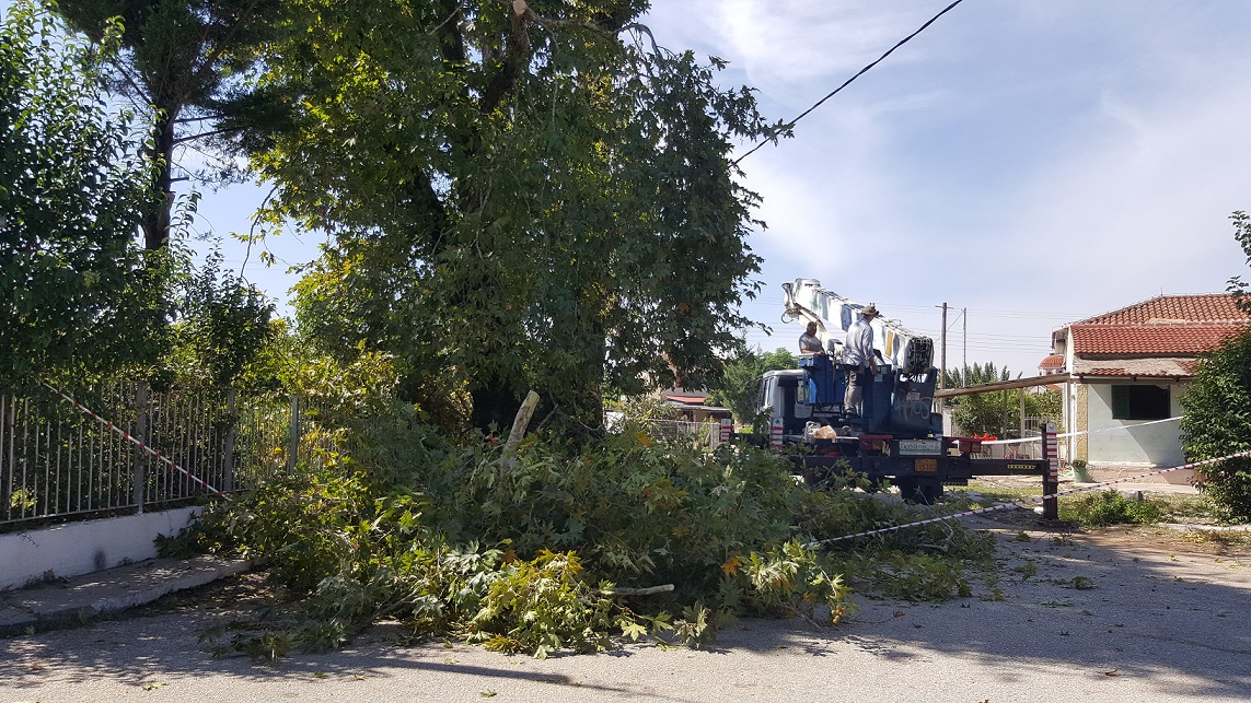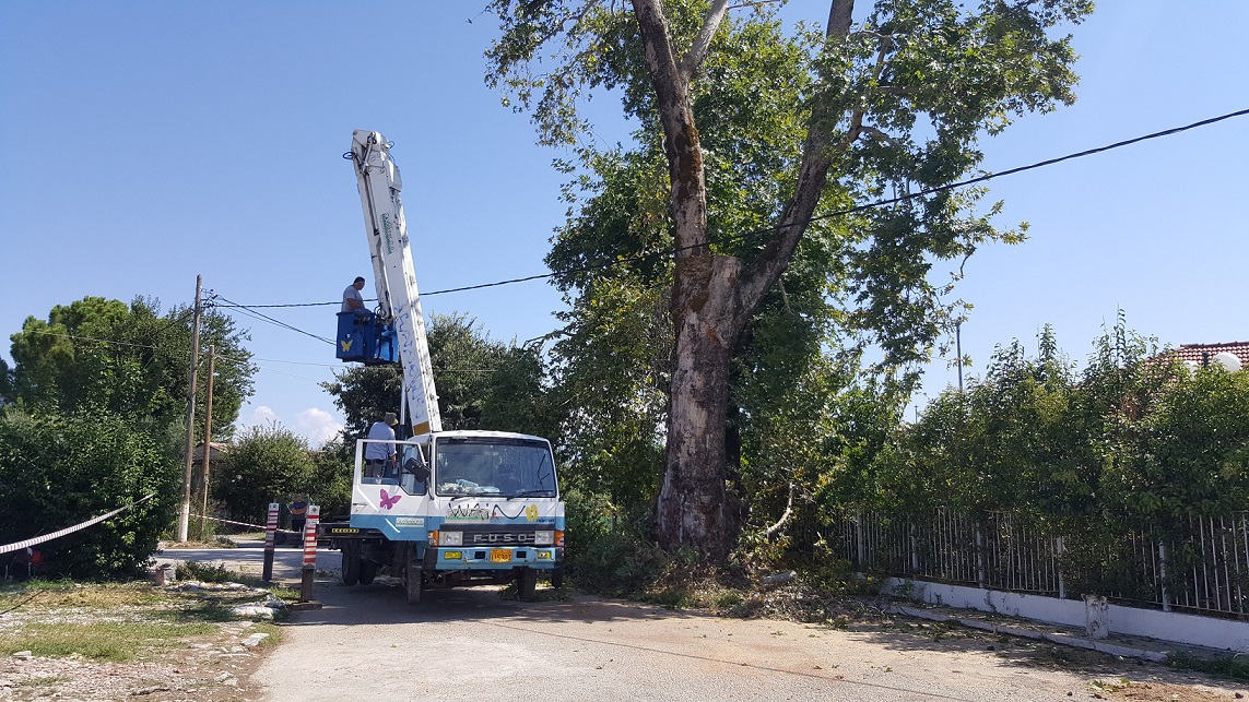 Εργασίες κλαδέματος πραγματοποιήθηκαν το τελευταίο διήμερο από ιδιωτικό συνεργείο που έχει σύμβαση με τον δήμο Αγρινίου, στον πανύψηλο αιωνόβιο πλάτανο, που βρίσκεται δίπλα στο κτίριο του παλιού Παιδικού Σταθμού, στα Καλύβια.