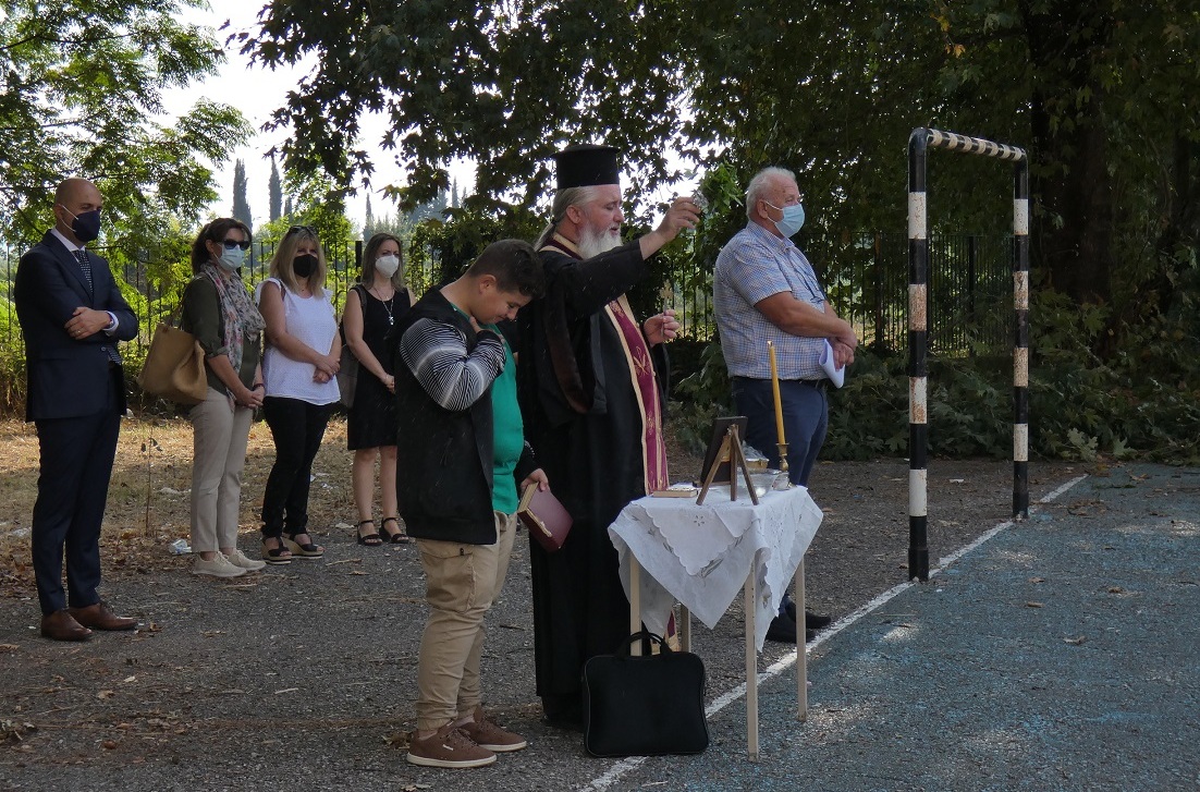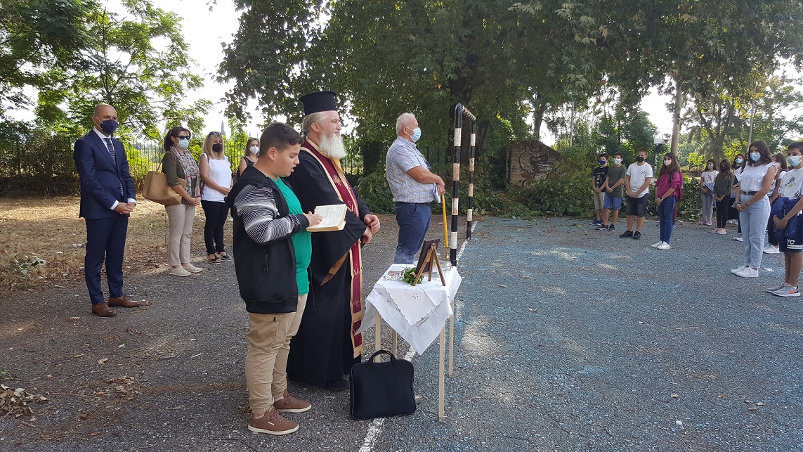 Στον προαύλιο χώρο, πραγματοποιήθηκε σήμερα στο Γυμνάσιο Καλυβίων ο Αγιασμός για το νέο σχολικό έτος, παρουσία εκπαιδευτικών, μαθητών και γονέων, με πιστή τήρηση απ΄ όλους των μέτρων λόγω covid-19.