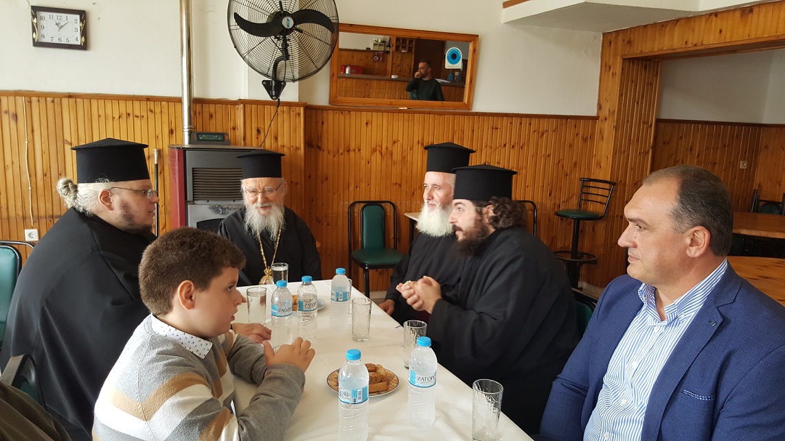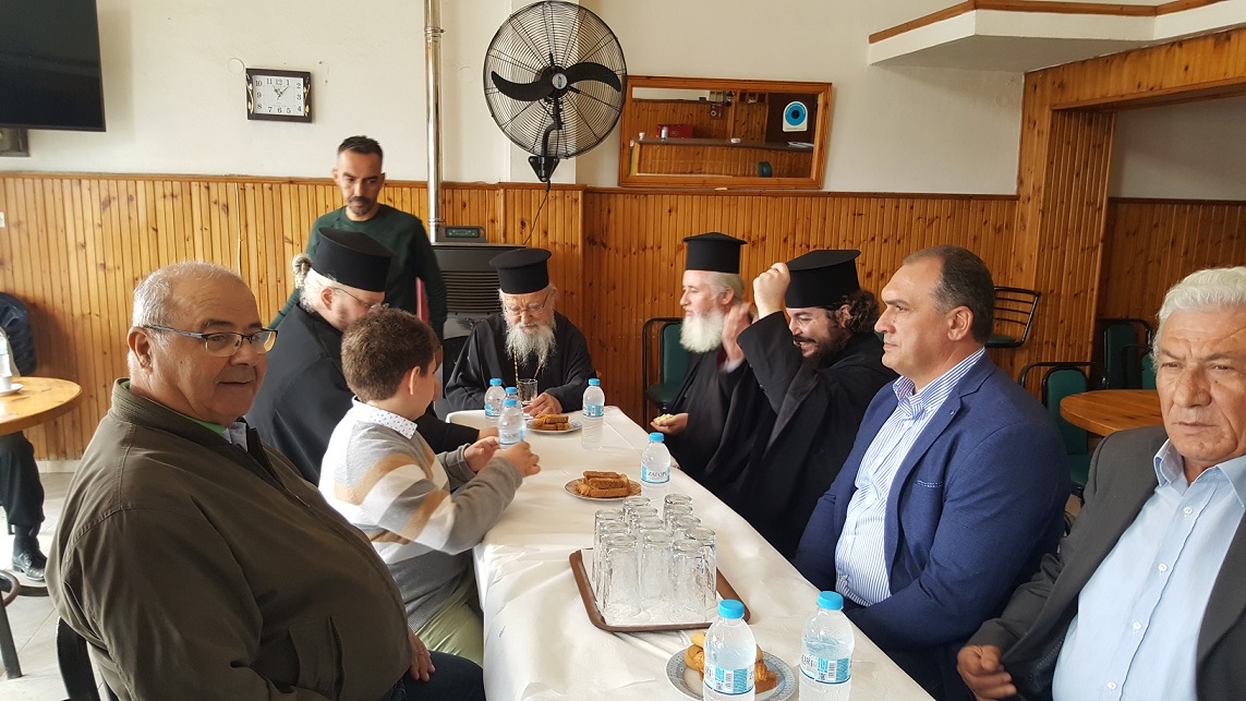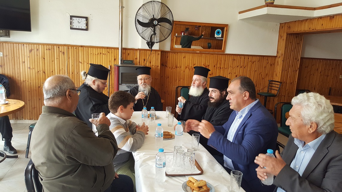 Ο Πρόεδρος της Κοινότητας Καλυβίων, Δημήτρης Αναστασίου, πρόσφερε καφέ και ροφήματα, προς τον Μητροπολίτη και την ακολουθία του, σε τοπικό καφενείο του χωριού μας.