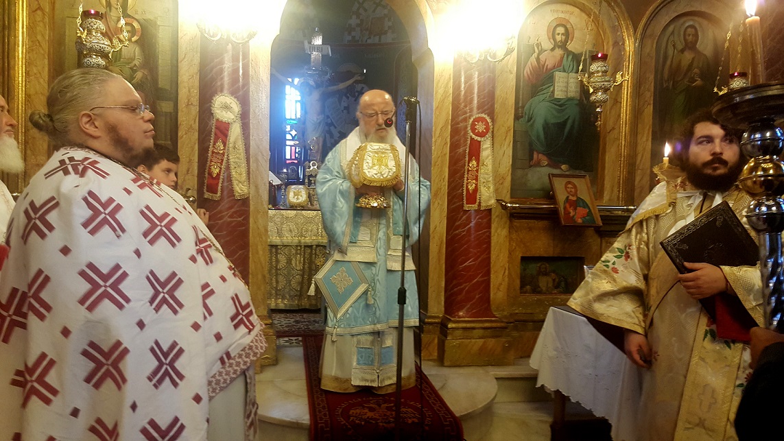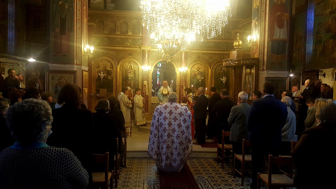 Συλλειτούργησαν ο Αρχιμανδρίτης Σιλουανός Ψιλλιάς, ο αιδεσιμότατος πρεσβύτερος π. Θεοδόσιος Αθανασόπουλος, εφημέριος του ναού και ο διάκος Ιωάννης Γκιάφης, ενώ μετά το πέρας της Θείας Λειτουργίας ο Σεβασμιώτατος Ποιμενάρχης μας κ. Κοσμάς, κηρύσσοντας τον θείο λόγο προς το Χριστεπώνυμο πλήθος, αναφέρθηκε στην ανάγκη να ανέβουν οι άνθρωποι πνευματικά, να νικήσουν τον ¨θάνατο¨ της ψυχής, να αφήσουν και να διώξουν από μέσα τους τον ¨παλιό¨ άνθρωπο ώστε να προσφέρουν τον εαυτό τους στον Θεάνθρωπο για να βιώσουν τη Θεία Χάρη του. Ο Μητροπολίτης τόνισε ότι, η εποχή μας απαιτεί όχι μόνο να σώσουμε το σώμα μας από ασθένειες αλλά και να έρθουμε κοντά στο αληθινό φως της πίστης και της ελπίδας.