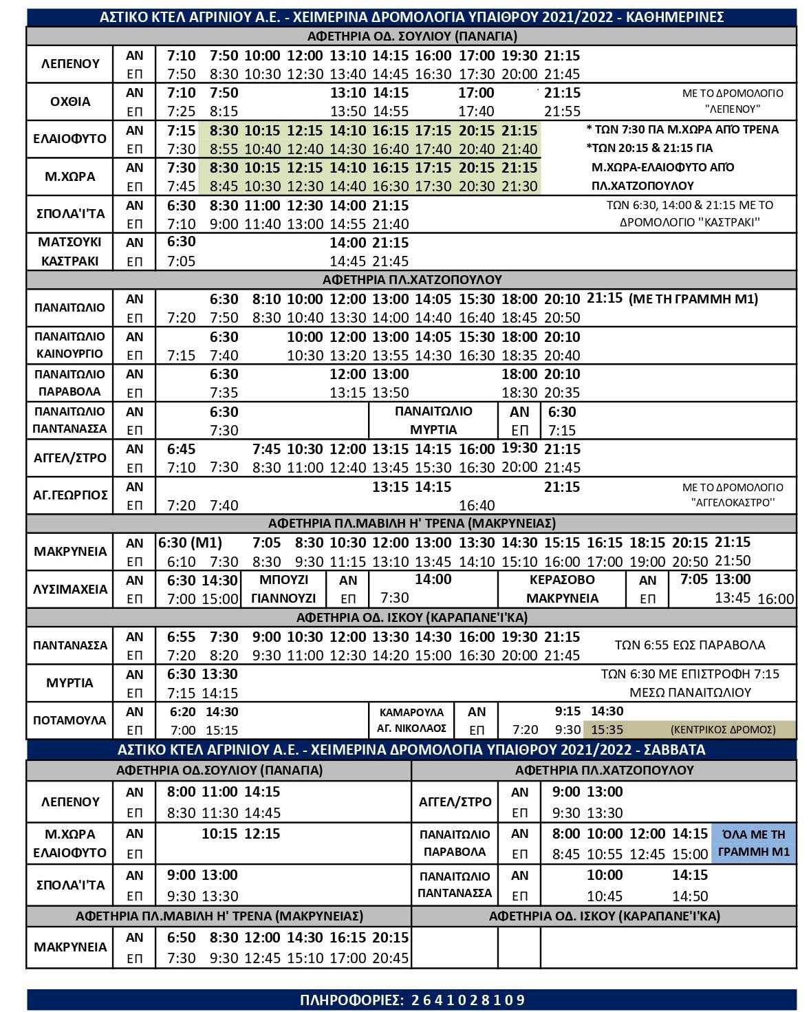 ΔΕΙΤΕ ΑΝΑΛΥΤΙΚΑ ΟΛΑ ΤΑ ΔΡΟΜΟΛΟΓΙΑ: