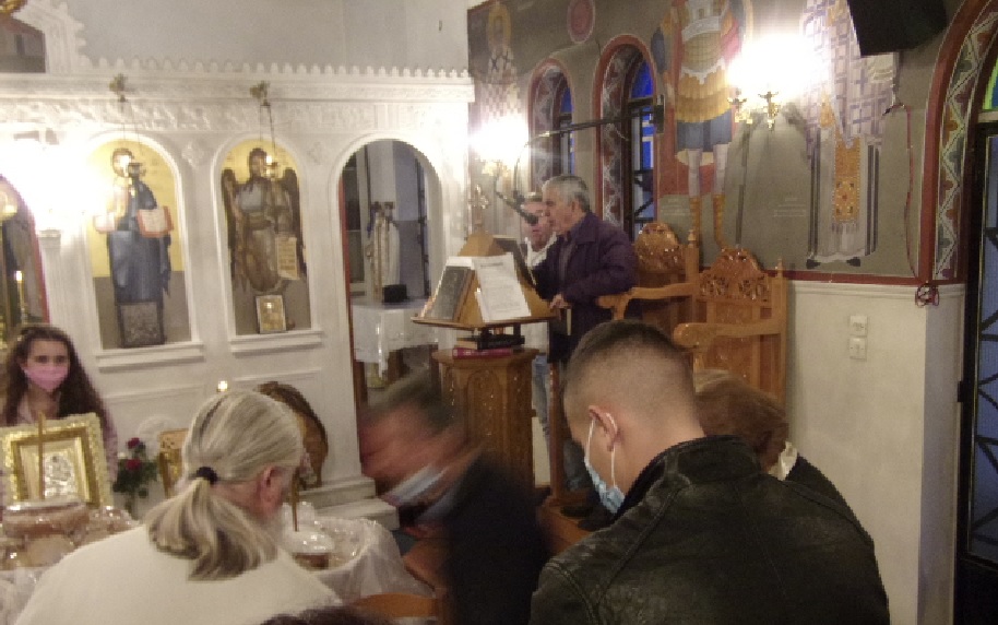 Με σεβασμό και ευλάβεια τελέσθηκε το απόγευμα ο Μέγας Πανηγυρικός Εσπερινός μετ’ Αρτοκλασίας, στον Ιερό Ναό Αγίου Δημητρίου, στον Πλάτανο Καλυβίων, παραμονή της μεγάλης εορτής με την παρουσία αρκετών πιστών, σε μια βαθιά θρησκευτική και κατανυκτική ατμόσφαιρα!