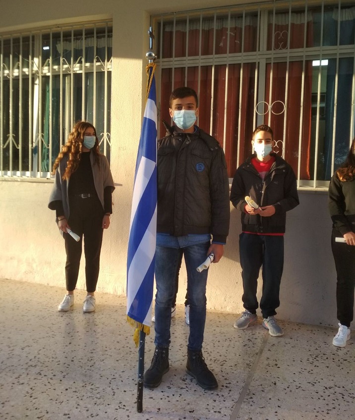 Στο προαύλιο του σχολείου έγινε η ανάγνωση του πρακτικού, για τον ορισμό σημαιοφόρου και παραστατών, καθώς και η παράδοση της σημαίας στους μαθητές από τον Διευθυντή του σχολείου κ. Ευστάθιο Πίτσα. Επίσης έγινε η απονομή βραβείων και αριστείων στους μαθητές και στις μαθήτριες που πρώτευσαν κατά το σχολικό έτος 2020-2021.