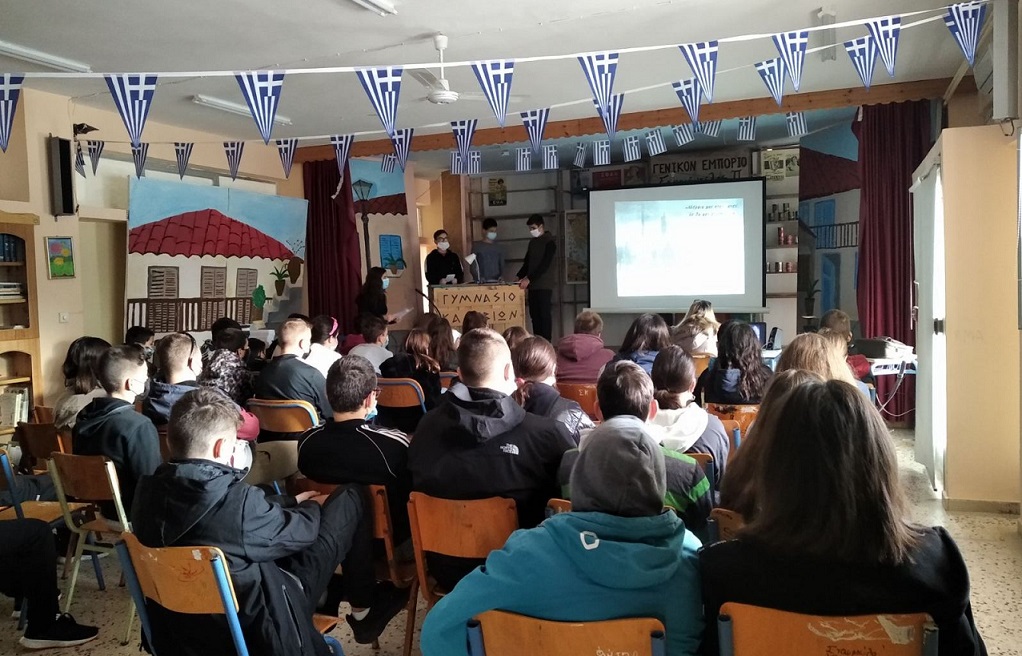 Ο Διευθυντής κ. Ευστάθιος Πίτσας έκανε μια σύντομη αναφορά στη σημασία και το νόημα εκείνων των γεγονότων και στη συνέχεια προβλήθηκαν φωτογραφίες και αρχειακό οπτικοακουστικό υλικό, με το χρονικό των γεγονότων της φοιτητικής εξέγερσης στο Πολυτεχνείο, ενάντια στην επτάχρονη δικτατορία.