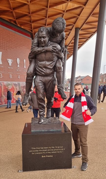 Όπως μας ανέφερε, ταξίδεψε πριν λίγες μέρες στην Μεγάλη Βρετανία για να παρακολουθήσει το περασμένο Σάββατο (20/11) παρέα με τον φίλο του Παναγιώτη, τον σπουδαίο αγώνα και κορυφαίο ντέρμπι, Λίβερπουλ εναντίον Άρσεναλ, σε ένα γήπεδο που αποτελεί έναν ποδοσφαιρικό ¨ναό¨ για τους φιλάθλους όλου του κόσμου!