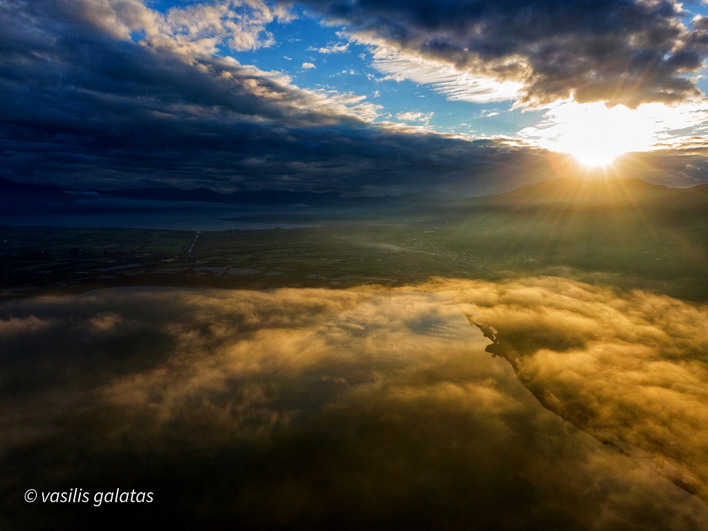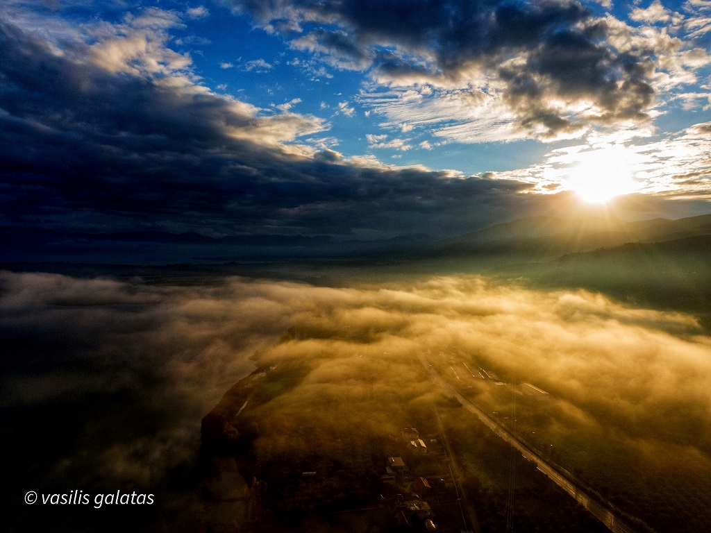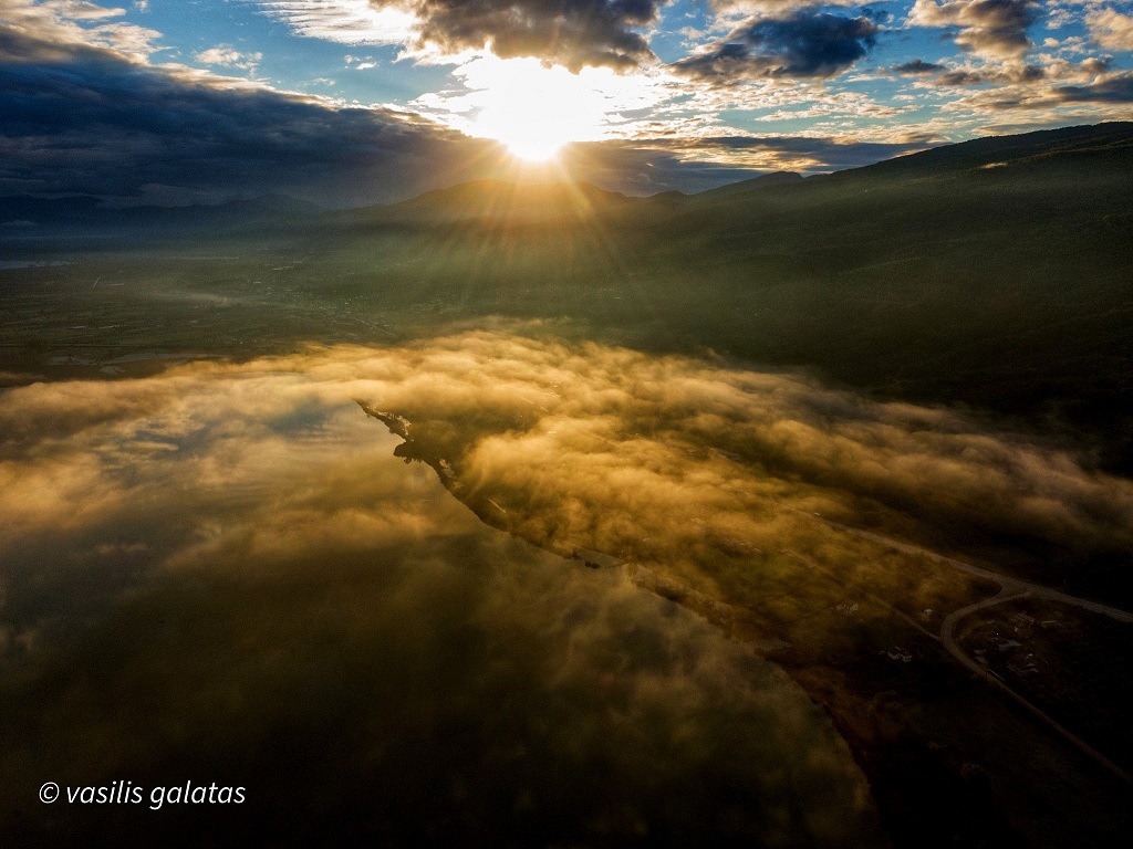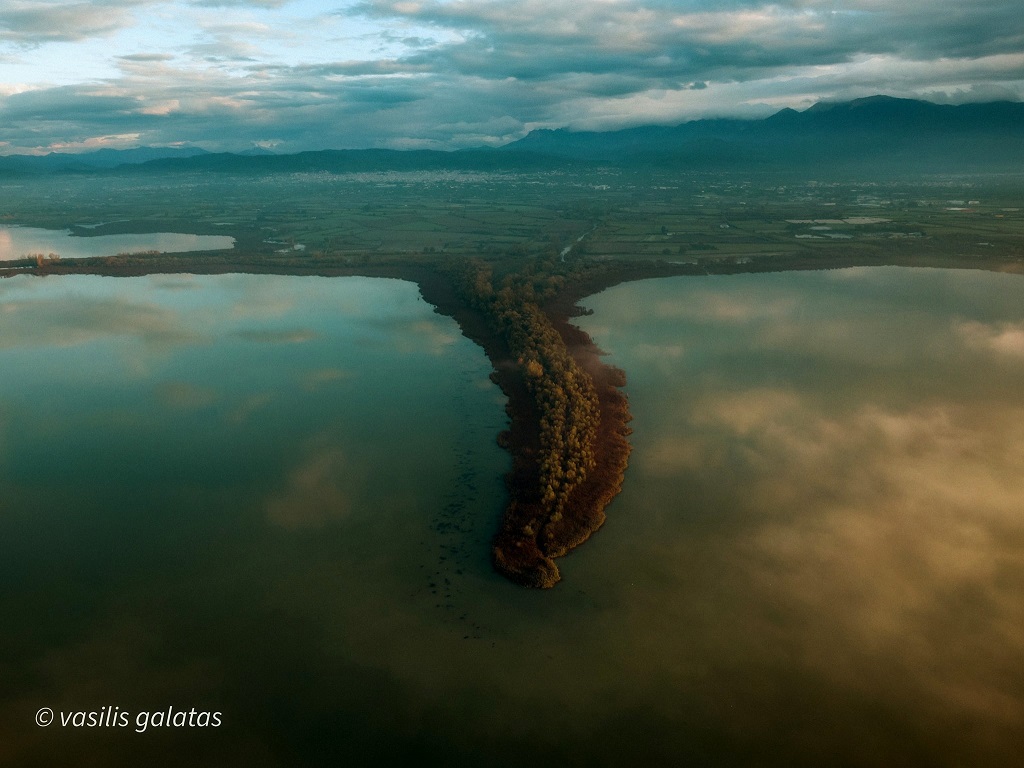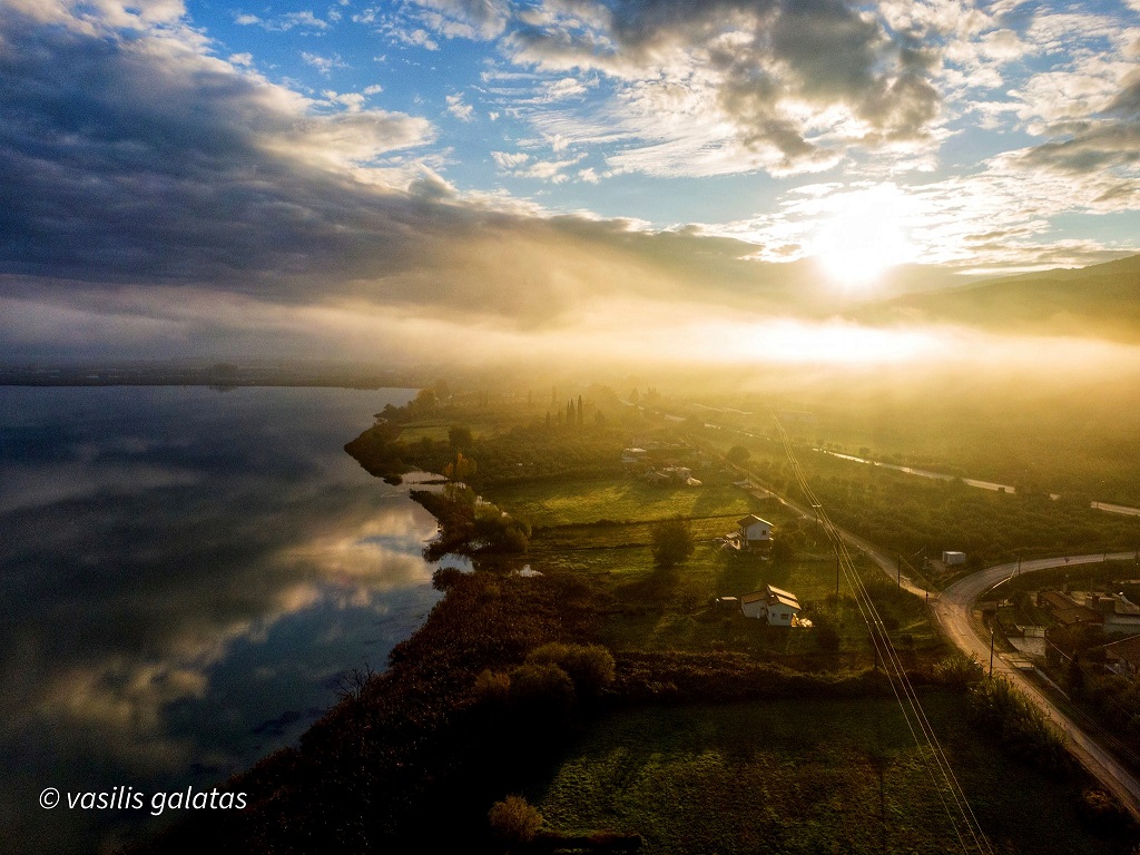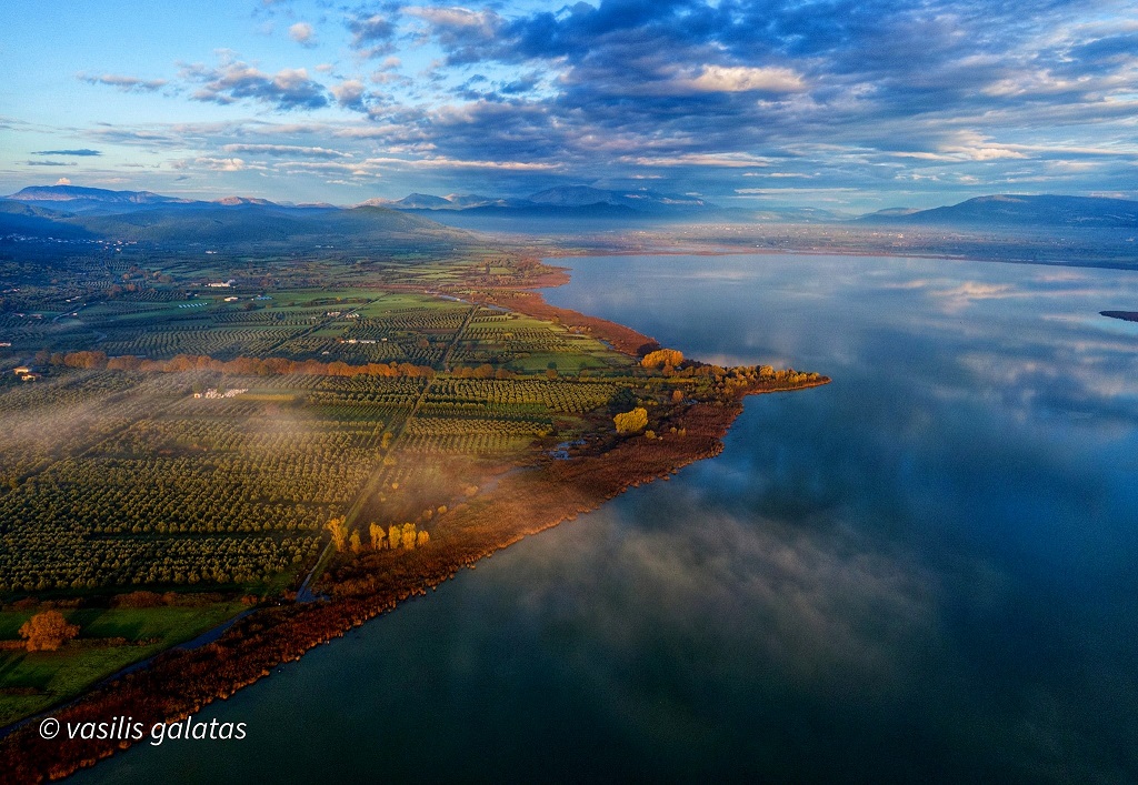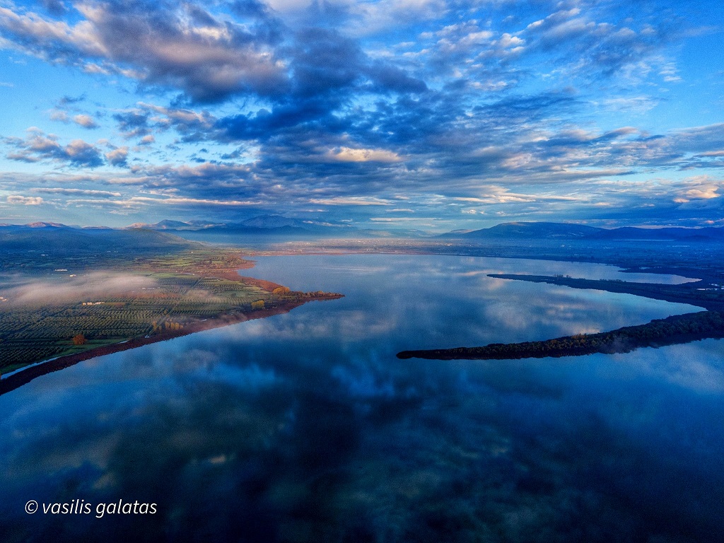 Πολύ κοντά στα Καλύβια και τον οικισμό Πλατάνου, προς τα νότια, βρίσκεται η λίμνη Λυσιμαχία και αυτή την εποχή, ιδιαιτέρως τις πρωινές ώρες που ο ήλιος ξεπροβάλει ανάμεσα στην χαμηλή νέφωση και την ομίχλη, το τοπίο είναι πανέμορφο, όπως φαίνεται από τις εναέριες φωτογραφίες του συμπατριώτη μας, Βασίλη Γαλατά.