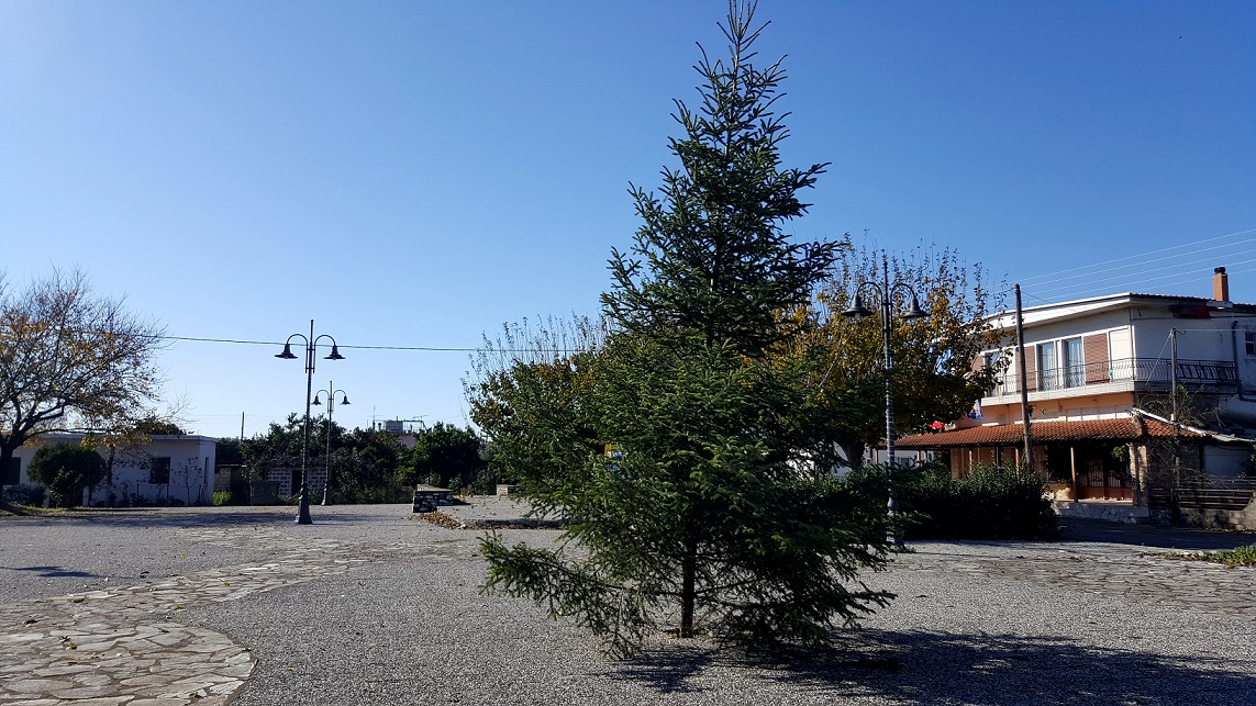Ηλιόλουστη μέρα ήταν η σημερινή, θα λέγαμε ότι έγινε ένα ¨διάλειμμα¨ από τις παρατεταμένες βροχοπτώσεις των τελευταίων ημερών και στην όμορφη πλατεία του οικισμού Αγίου Γεωργίου Καλυβίων, το χριστουγεννιάτικο δεντράκι είναι έτοιμο να ¨δεχτεί¨ τα στολίδια και τα πολύχρωμα φωτάκια που θα φέρουν σε λίγες μέρες τα παιδιά του χωριού!
