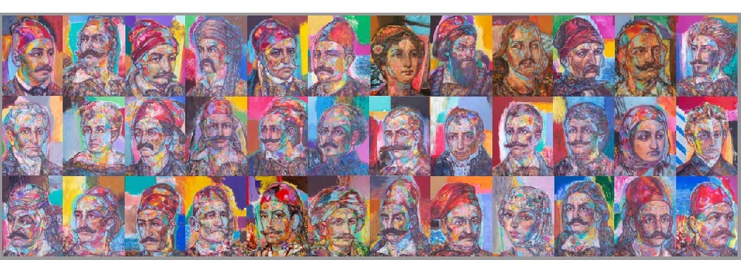 Μέσα από 40 ζωγραφικά πορτρέτα και 30 ξυλογραφίες, έρχονται στο παρόν τα πρόσωπα που γνωρίζουμε από την μακρινή παιδική ηλικία, ήρωες που μας γοήτευαν μέσα στις σχολικές αίθουσες. Μία μοναδική πινακοθήκη πορτρέτων των αγωνιστών του ’21 μέσα από έναν πλούτο διαφορετικών τεχνικών, όπου το βλέμμα τους συναντά τις συσσωρευμένες αναμνήσεις δύο αιώνων.