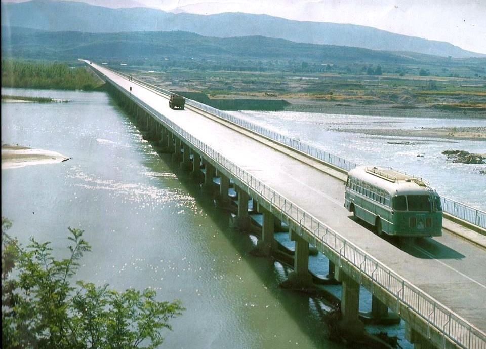 Αρχές δεκαετίας του ΄70. Λεωφορείο του ΚΤΕΛ Αιτ/νίας στη γέφυρα Αχελώου, κοντά στο χωριό Στράτου