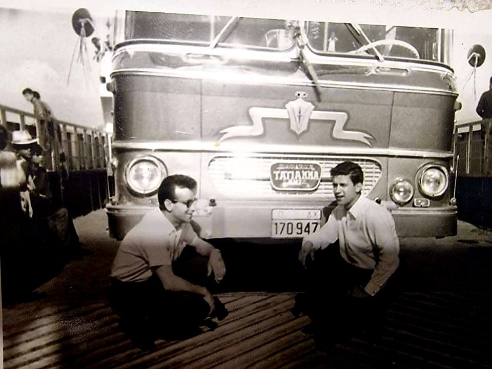 Οδηγός: ΡΑΠΤΗΣ ΒΑΓΓΕΛΗΣ (αριστερά) Δίπλα του ο ΚΑΡΑΘΑΝΟΣ μαθητευόμενος τότε και αργότερα οδηγός λεωφορείου Νο 42.
