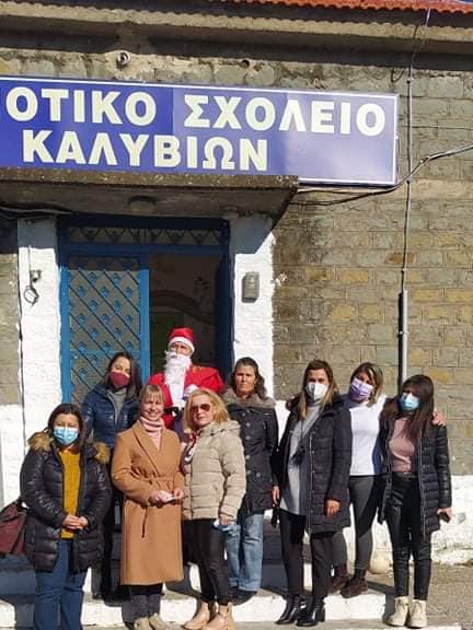 Τα παιδιά του Δημοτικού σχολείου Καλυβίων αντάμωσαν με τον Αϊ Βασίλη που ήρθε από… το μακρινό χωριό του, το Ροβανιέμι, άνοιξε τον σάκο του και μοίρασε δώρα, λιχουδιές και χαρά, στους μικρούς μαθητές!