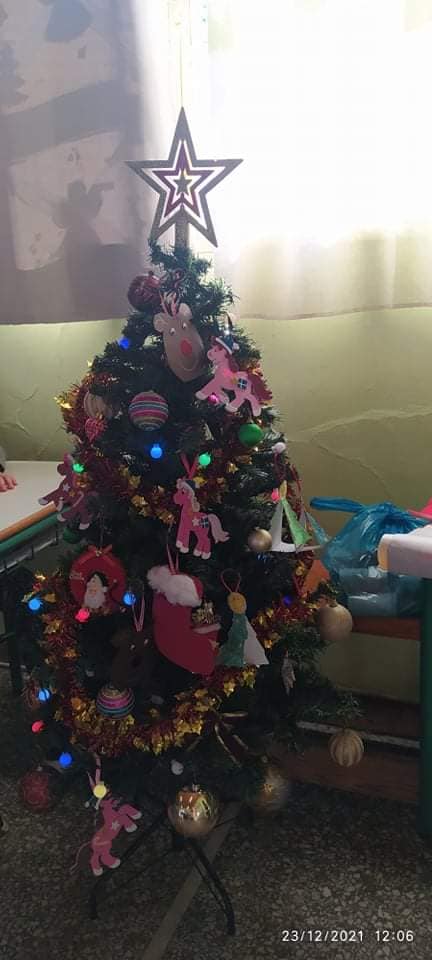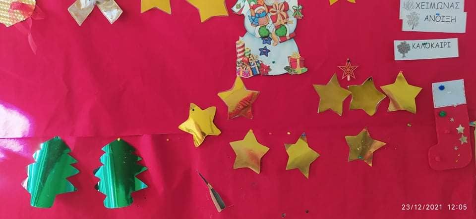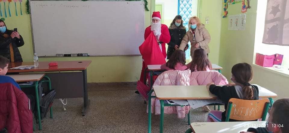 Νωρίτερα προηγήθηκε η χριστουγεννιάτικη γιορτή του σχολείου, η οποία έγινε ξεχωριστά ανά τάξη και ακούστηκαν από τα παιδιά ποιήματα και τα κάλαντα των ημερών!