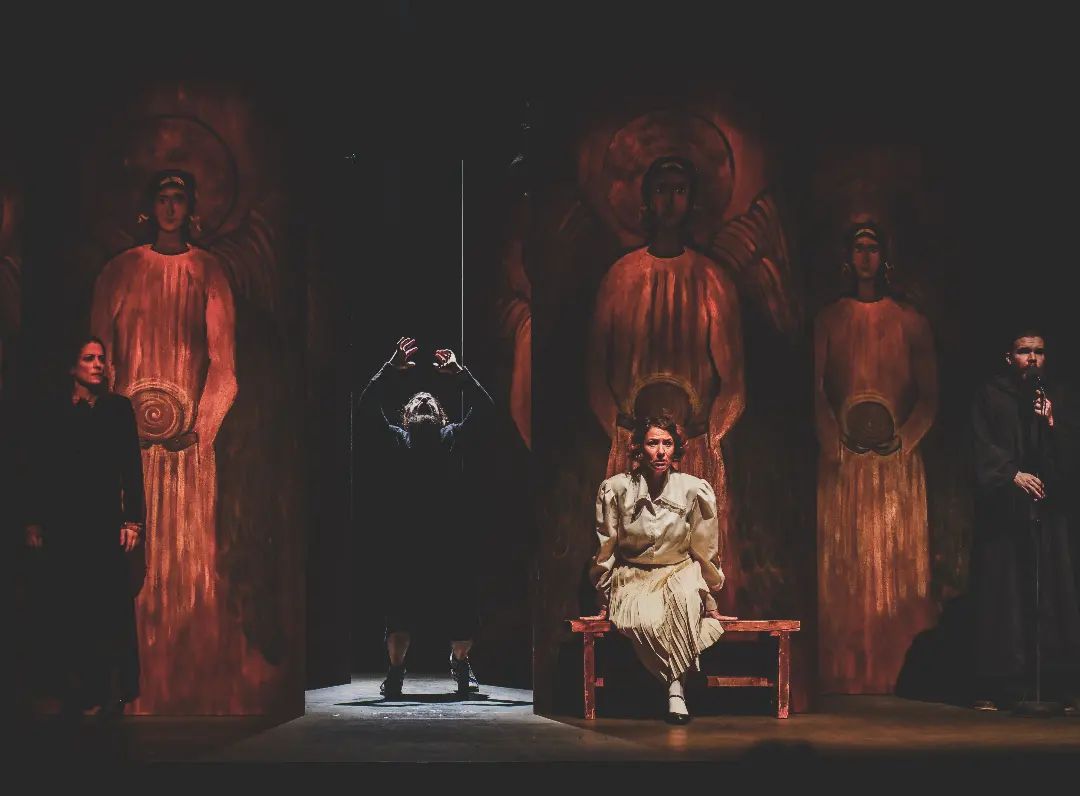 Έπειτα ο Χρήστος Διονυσόπουλος που είναι και ο βασικός μας χαρακτήρας που υποδύεται τον Βικέντιο, τον είχα δει να παίζει στο ΔΗΠΕΘΕ Αγρινίου, έχει τελειώσει το Εθνικό Θέατρο και πραγματικά ενθουσιάστηκα από την ενέργεια και την ερμηνεία του. Χαίρομαι πάρα πολύ για αυτή τη συνάντηση με τον Χρήστο, είναι ένας άνθρωπος πολύ εργατικός, έξυπνος και πολύ ταλαντούχος. Στη συνέχεια, είναι η Νικολίτσα Ντρίζη είναι μια κοπέλα με καταγωγή από τη Πάτρα, οπότε κάπως σχετίζεται με το Αγρίνιο, την είχα δει σε πολλές παραστάσεις στην Αθήνα και είναι εξαιρετική ηθοποιός, με μια ψυχική δύναμη και έναν ψυχικό κόσμο αδιανόητο και τον τρόπο με τον οποίο αφηγείται γιατί υποδύεται τη φωνή της σκυλίτσας, ότι δεν μπόρεσε να πει το σκυλάκι το λέμε μέσα από το φωνή της Νικολίτσας. Είναι μαγικό να ακούς τη φωνή της σκυλίτσας και πως αντιλαμβάνεται την αγάπη το σκυλάκι. Τέλος, είναι ο Άρης Μπαταγιάννης ο οποίος είναι ένα νέο παιδί, που έχει τελειώσει πρόσφατα τη σχολή, έχει σχέση με το Αγρίνιο γιατί σπούδασε εδώ φοιτητής και συμμετείχε σε πολλές θεατρικές ομάδες, και ο οποίος υποδύεται το alter ego του μοναχού. Είναι ο έτερος μοναχός ο οποίος δεν τον βλέπει ποτέ κανείς αλλά είναι πάντα ο ακόλουθός του.