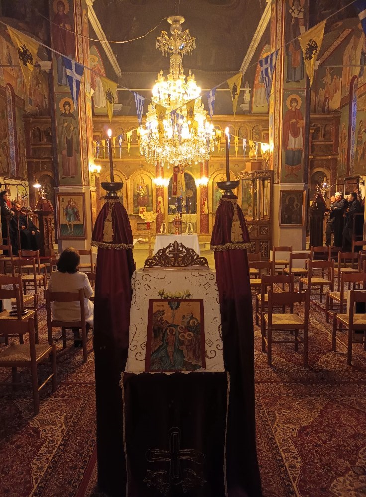 Τις ιερές ακολουθίες τέλεσε ο ιερέας π. Θεοδόσιος Αθανασόπουλος, συνοδεία των ιεροψαλτών, ενώ μετά το πέρας του Αγιασμού και της κατάδυσης του Σταυρού, που τελέσθηκε εντός του ναού, οι πιστοί μπορούσαν να πάρουν αγιασμένο νερό από νιπτήρες που είχαν τοποθετηθεί στον προαύλιο χώρο.