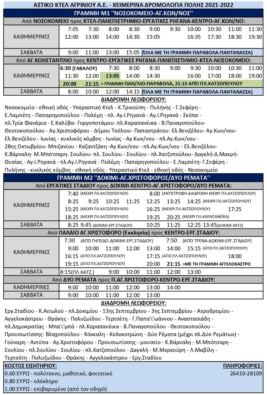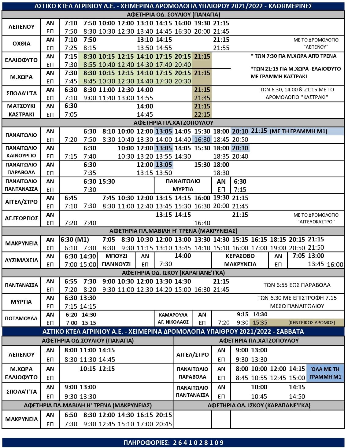 Μετά την εορταστική περίοδο που διανύσαμε, όπως ανακοινώθηκε από το Αστικό ΚΤΕΛ Αγρινίου τα δρομολόγια λεωφορείων που ισχύουν από σήμερα 09/01/2022 "πυκνώνουν" για το επιβατηγό κοινό, ενώ ειδικά για την διαδρομή Πλάτανος - Καλύβια - Αγ. Γεώργιος – Αγγελόκαστρο, τα δρομολόγια θα εκτελούνται ως εξής: