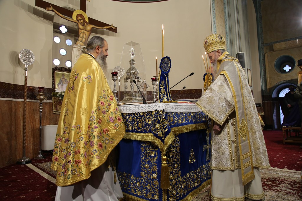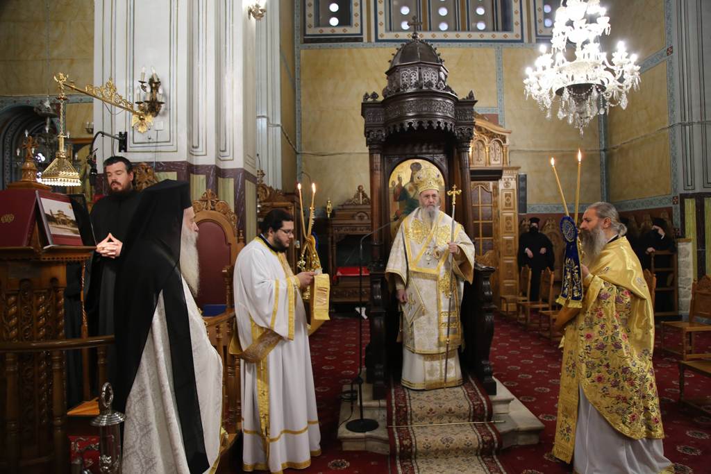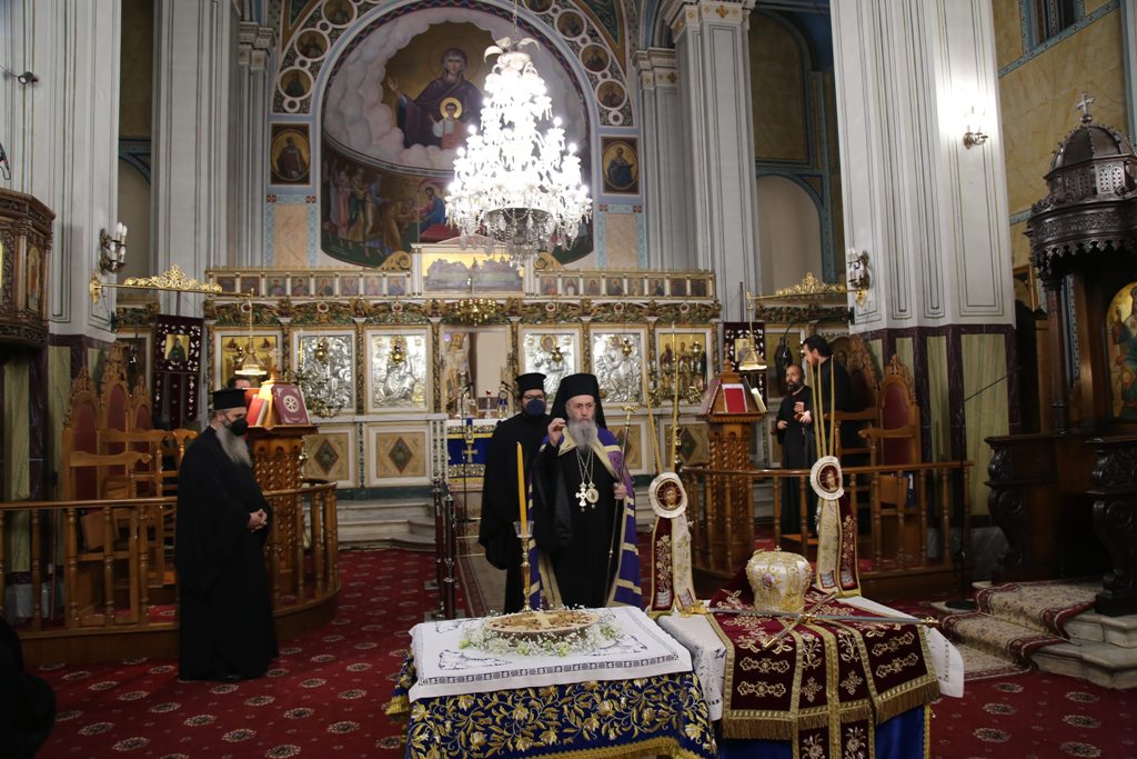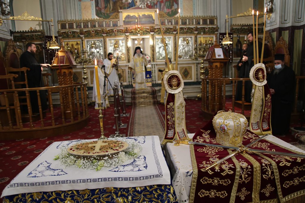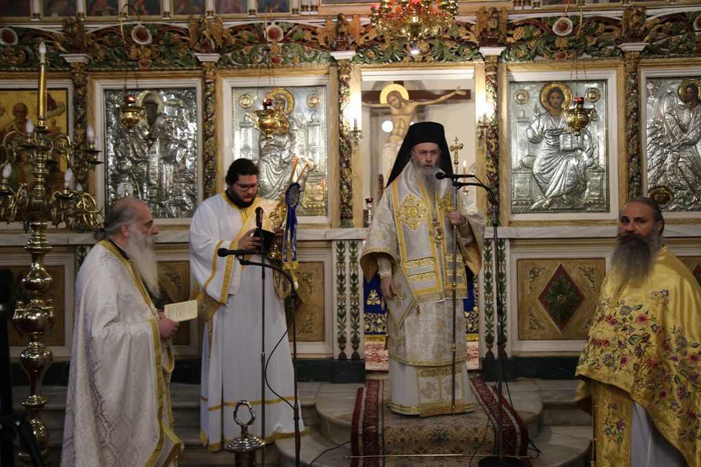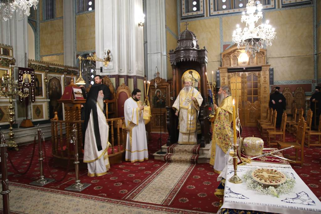 Στην ακολουθία του Όρθρου χοροστάτησε ο Σεβασμιώτατος Τοποτηρητής, Μητροπολίτης Ναυπάκτου και Αγίου Βλασίου κ. Ιερόθεος, ο οποίος προέστη της Θείας Λειτουργίας και του ιερού Μνημοσύνου.