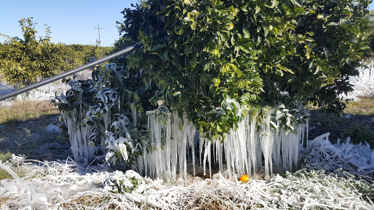 Οι αγρότες της περιοχής προκειμένου να αντιμετωπίσουν τους παγετούς των τελευταίων ημερών, έθεσαν σε αυτόματη λειτουργία το αρδευτικό σύστημα, προκειμένου η υγρασία και οι υδρατμοί να ¨προστατεύσουν¨ τις καλλιέργειες των εσπεριδοειδών από τις χαμηλές θερμοκρασίες.