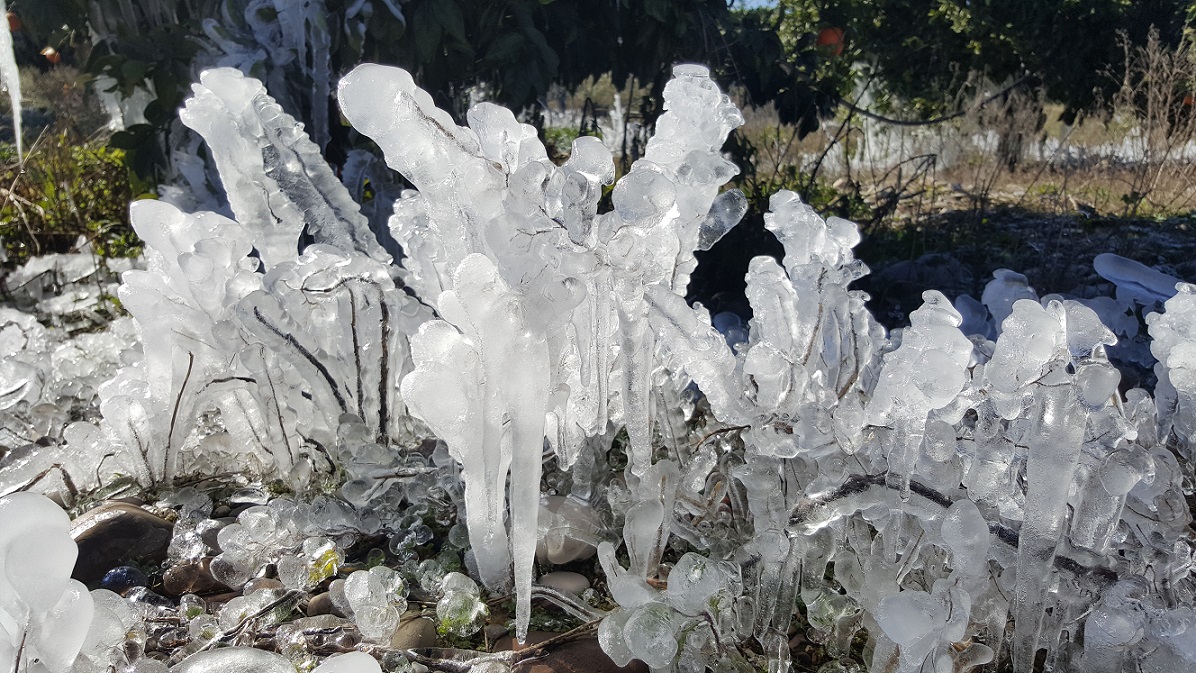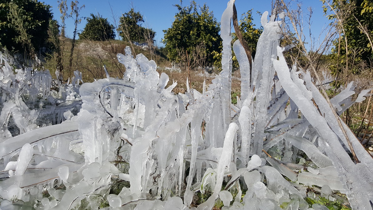 Σε πολλές περιπτώσεις το νερό από τα μπεκ που πέφτει στο φύλλωμα, ¨παγώνει¨ τις πορτοκαλιές και τις μανταρινιές της περιοχής και δημιουργεί πανέμορφους σχηματισμούς με σταλακτίτες και ένα πέπλο παγετού στρωμένο γύρω τους, ενώ με το πρώτο φως του ήλιου μοιάζουν όλα εντυπωσιακά!
