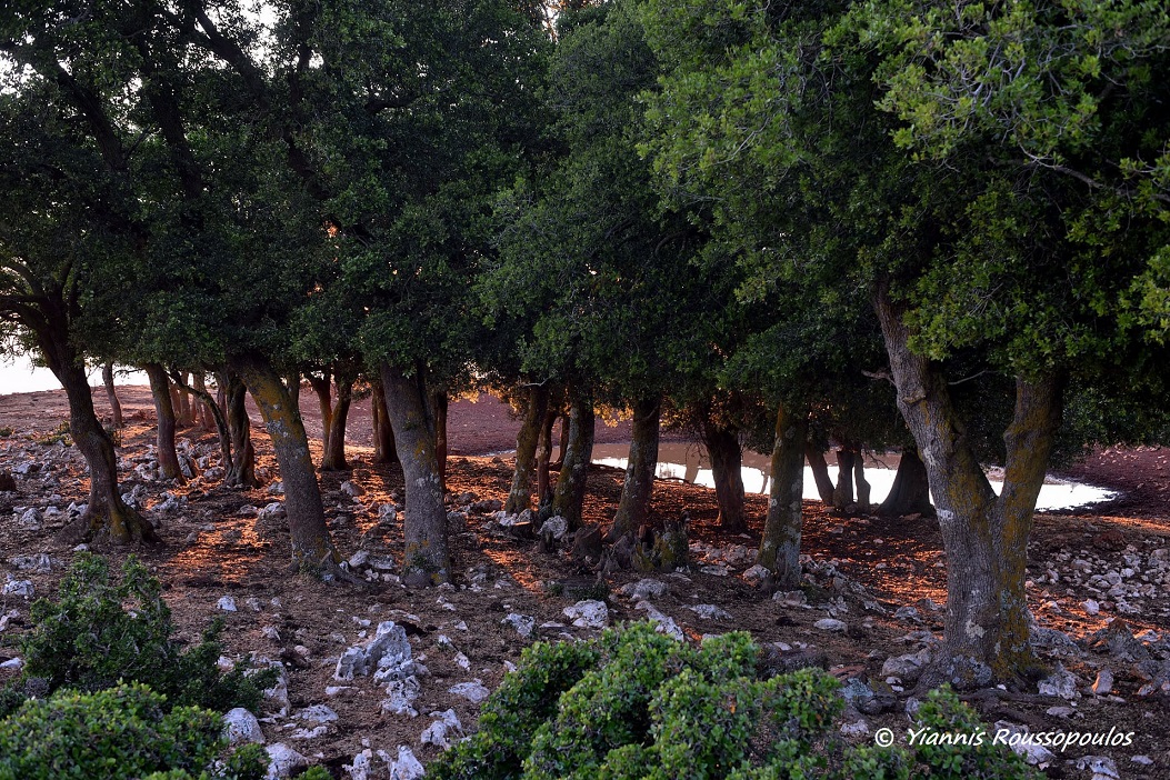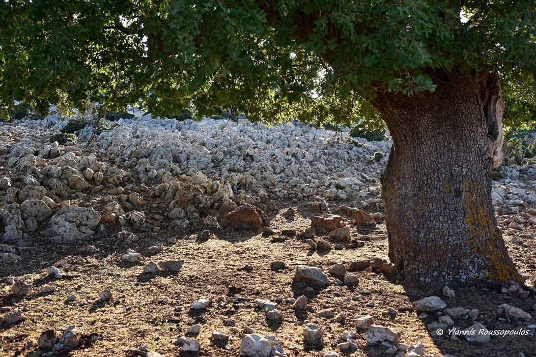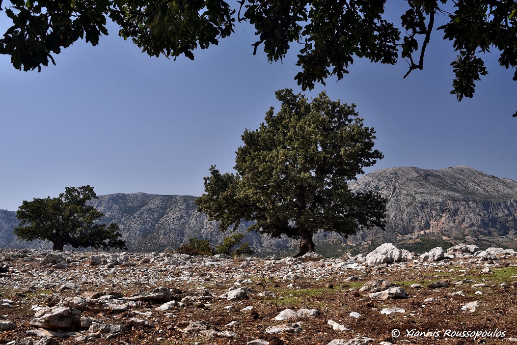 Άγριος κι άνυδρος τόπος. Πέτρα στην πέτρα και βοσκημένα κοντοπούρναρα. Πάνω στη ράχη του βουνού, κάποιες λάκκες κρατούν λίγο χώμα και μερικές υπεραιωνόβιες βελανιδιές. Πρόκειται για καρστικές δολίνες, που προέκυψαν μέσα στο γεωλογικό χρόνο από τη διάβρωση των γύψων που εμπεριέχουν οι ασβεστόλιθοι.