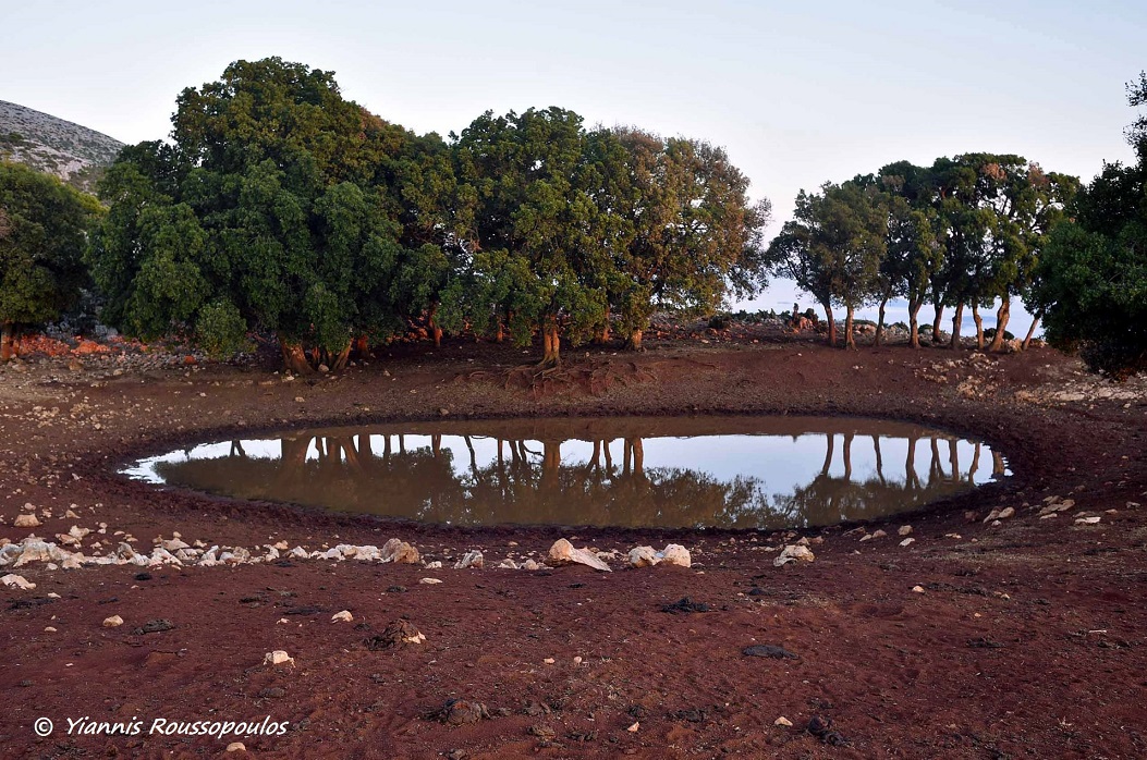 Η μικρή λιμνούλα που εικονίζεται είναι σκαμμένη με τα χέρια από τους παλαιότερους, με στόχο να συλλέγει το πολύτιμο νερό για το πότισμα των ζώων.