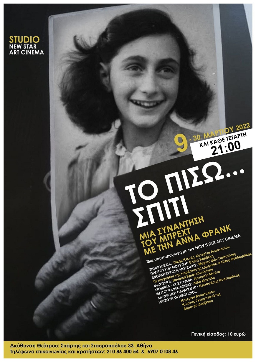 Η συμπατριώτισσά μας ηθοποιός και σκηνοθέτης Κατερίνα Αναστασίου παρουσιάζει τη θεατρική παράσταση "Το Πίσω σπίτι", και περιμένει το θεατρόφιλο κοινό από την Τετάρτη 9 Μαρτίου, και κάθε Τετάρτη στις 21:00 μ.μ. στο New Star art studio, πλατεία Αμερικής, στην Αθήνα.