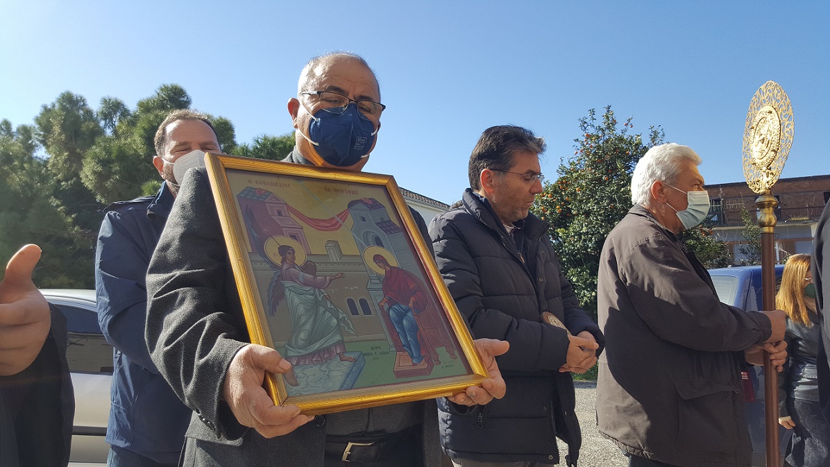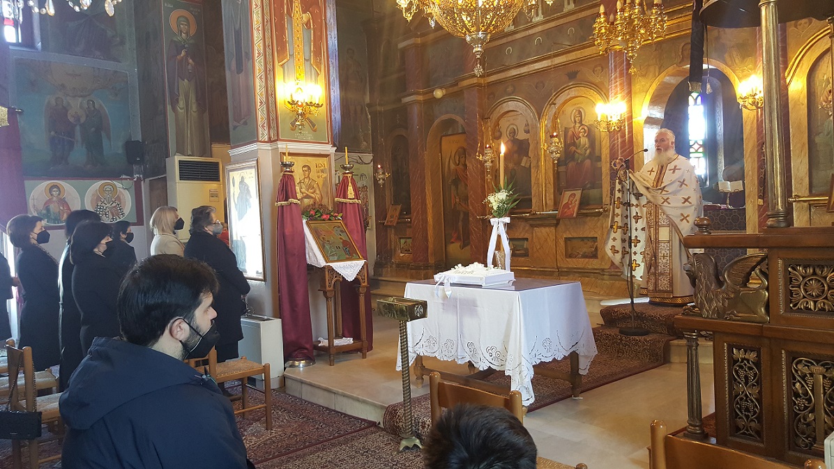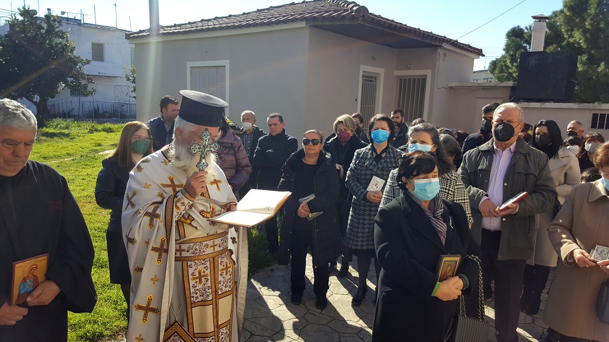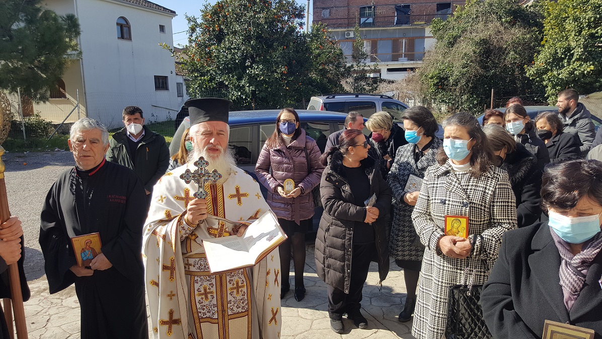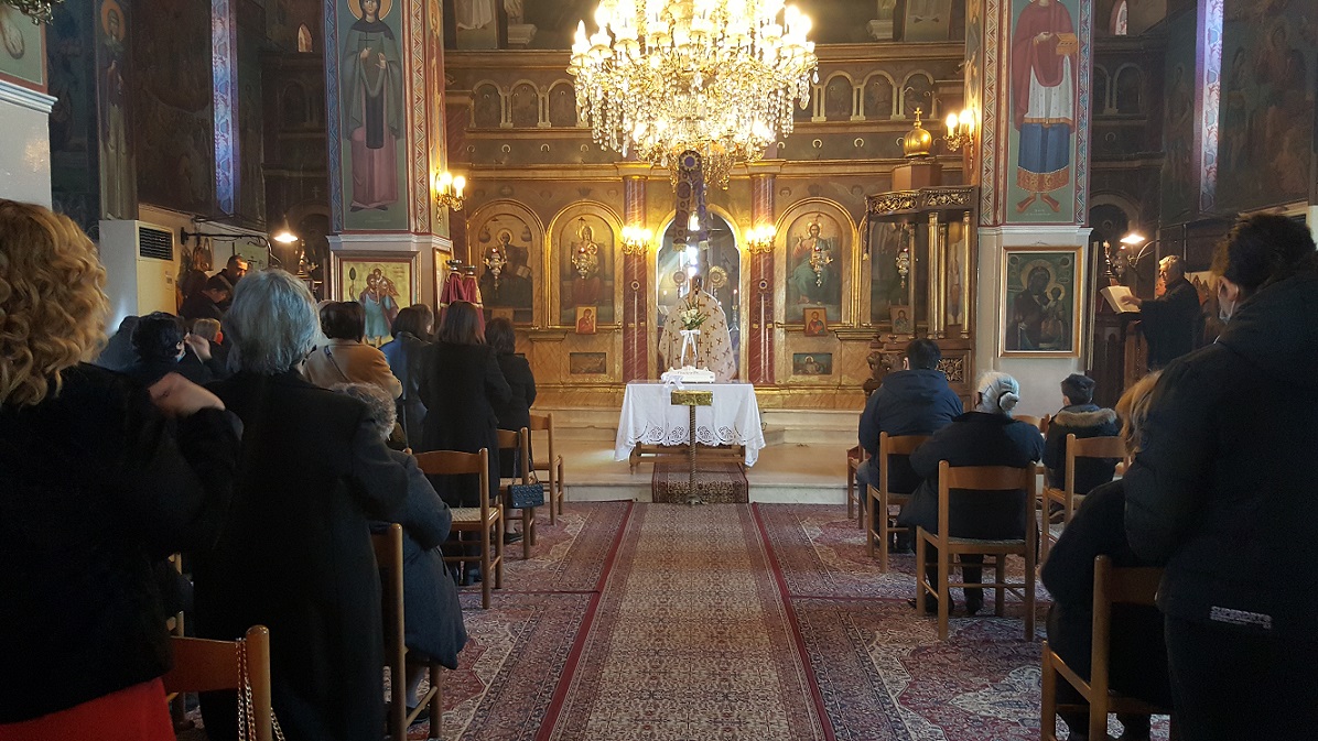 Ο πατήρ Θ. Αθανασόπουλος, συνοδεία των ιεροψαλτών, των επιτρόπων του ναού και πολλών πιστών που κρατούσαν τις εικόνες που έφεραν από τα σπίτια τους, διάβασε σε τέσσερις στάσεις πέριξ της εκκλησίας, παρακλήσεις και ύμνους για τη σημερινή γιορτή της Ορθοδοξίας.