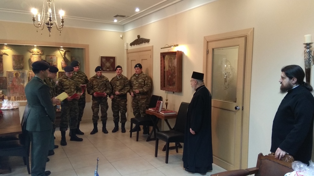Την Παρασκευή 22 Δεκεμβρίου 2017 ο Σεβασμιώτατος Ποιμενάρχης μας, Μητροπολίτης Αιτωλίας και Ακαρνανίας κ. Κοσμάς δέχθηκε στα Γραφεία της Ιεράς Μητροπόλεως, στην Ιερά Πόλη Μεσολογγίου, αντιπροσωπεία στρατιωτών του 2/39 Συντάγματος Ευζώνων και τη Φιλαρμονική της Ιεράς Πόλεως Μεσολογγίου «Ιωσήφ Ρωγών», που έψαλλαν τα κάλαντα καθώς και άλλα επίκαιρα τραγούδια και ύμνους.